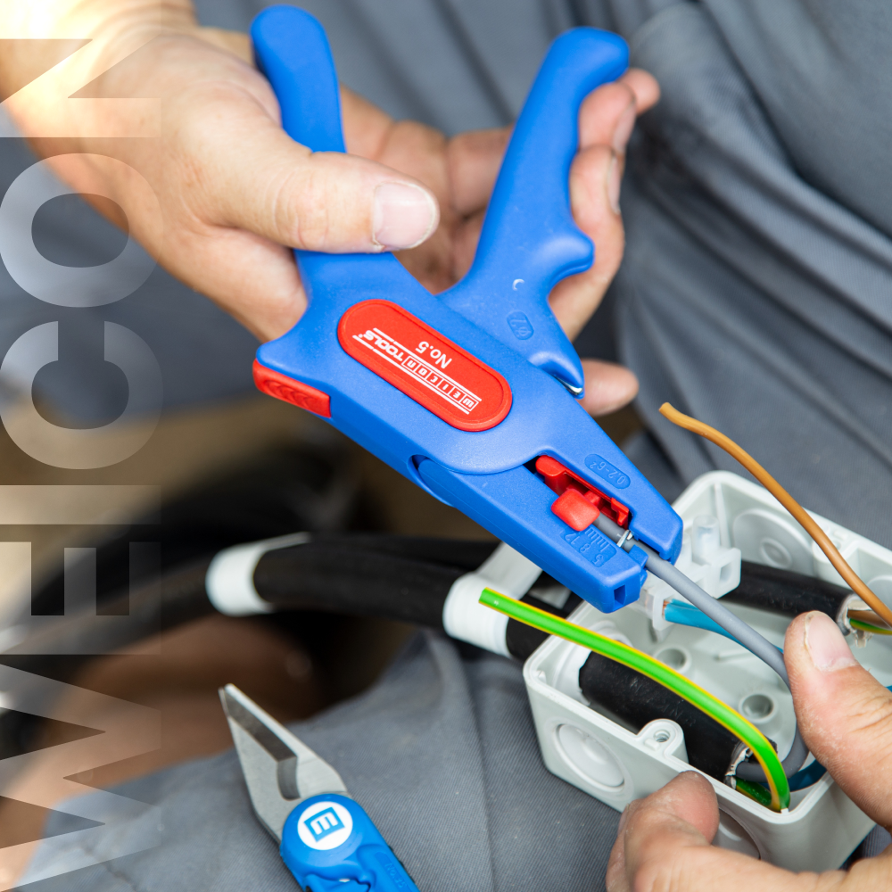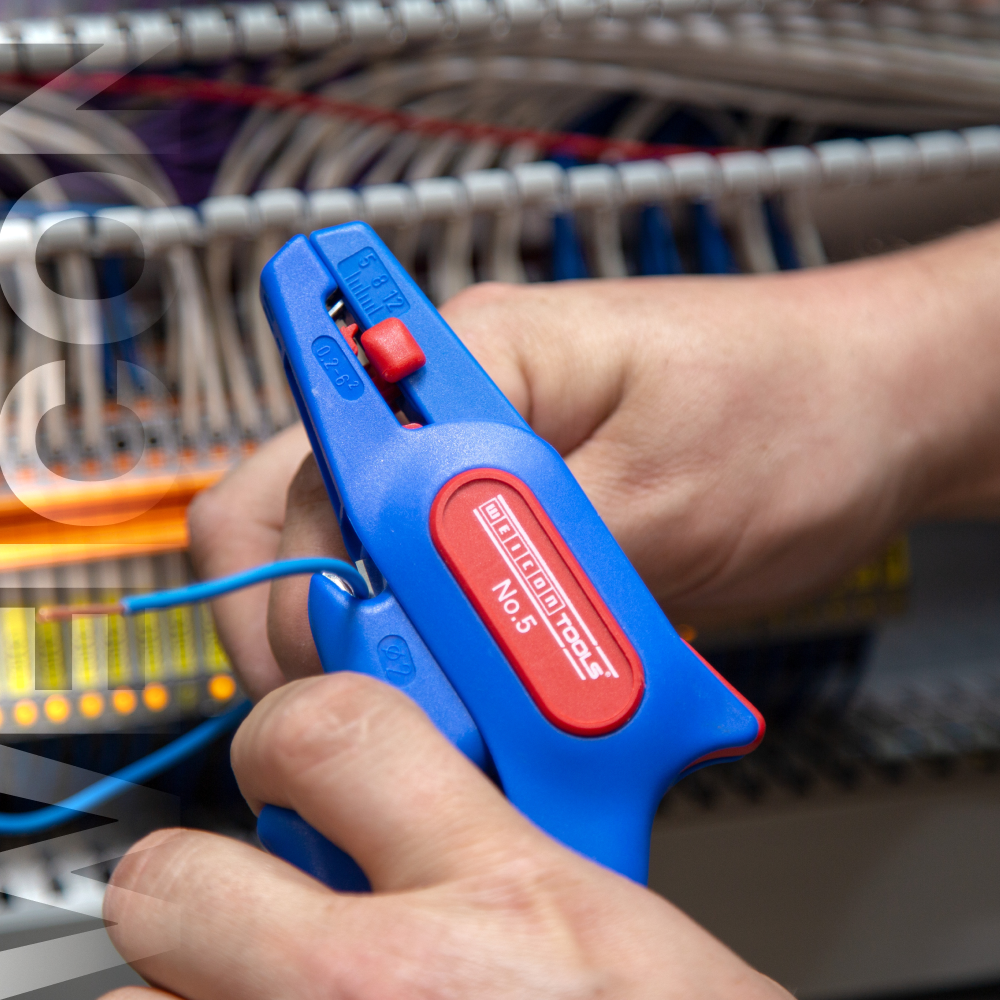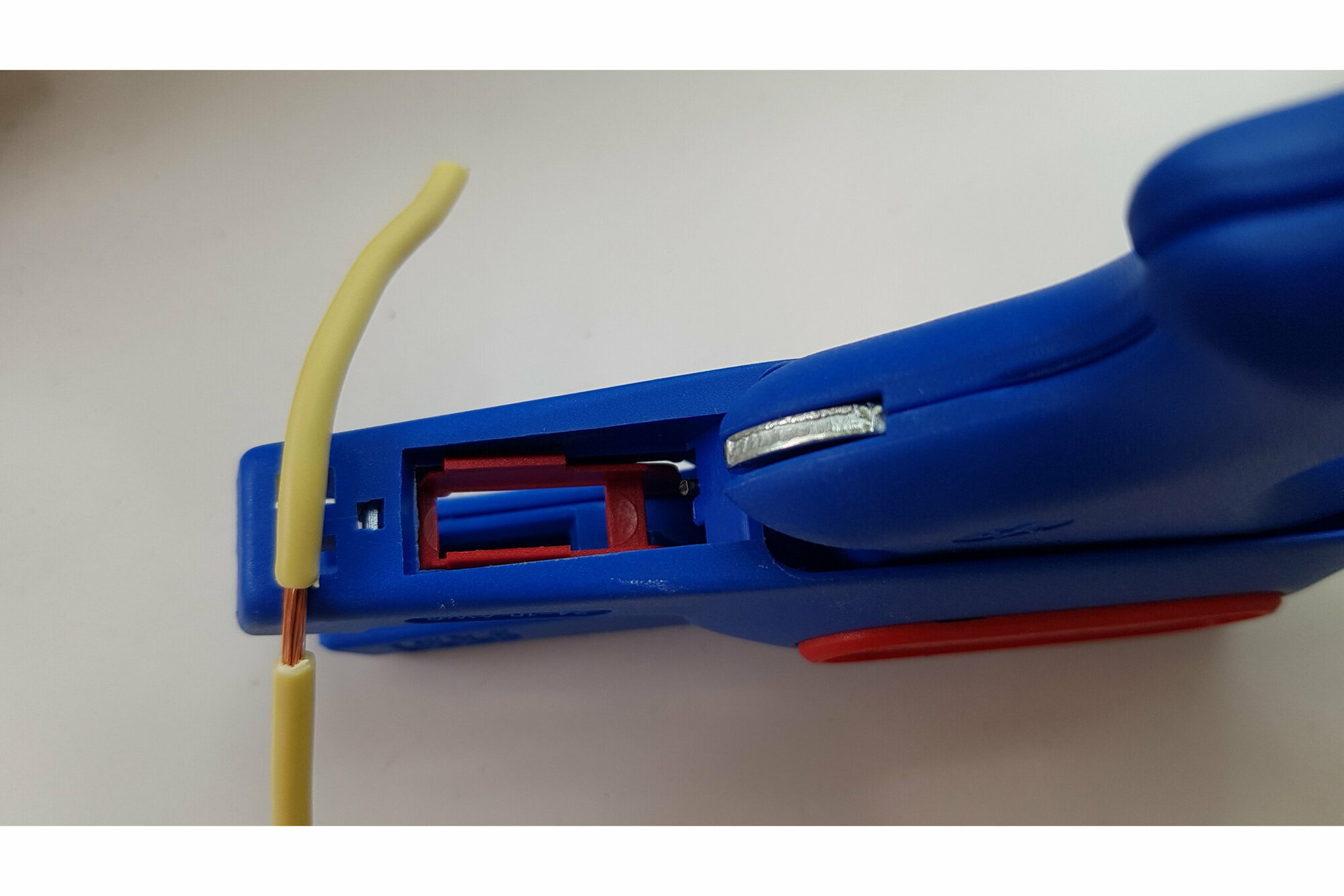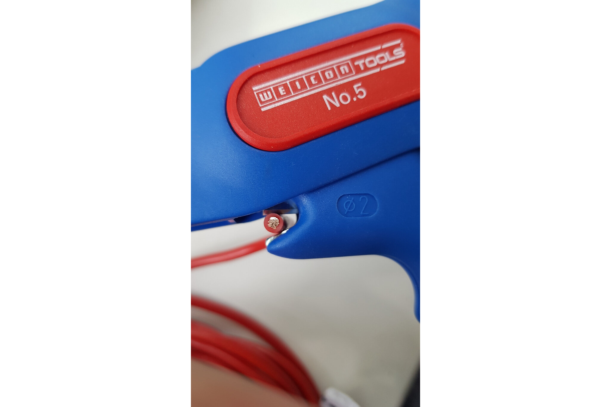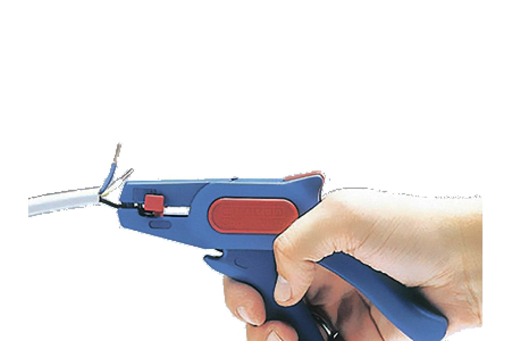Инструмент для снятия ПВХ-изоляции монтажных проводовЛегкий и удобный в работе стриппер клещевого типа для снятия изоляции гибких и жестких проводов с сечением жилы 0,2-6,0 мм2. Конструкция стриппера обеспечивает автоматическую адаптацию для снятия изоляции проводов с любым сечением жилы из указанного диапазона;Передвигаемый упор и шкала позволяет устанавливать длину снимаемой изоляции в диапазоне от 5 до 12 мм;Ножи стриппера могут быть заменены на новые (арт. wcn51100002 - Комплект зап. ножей для WEICON Super № 5);Встроенный резак для проводов и кабелей диаметром до 2,0 мм.