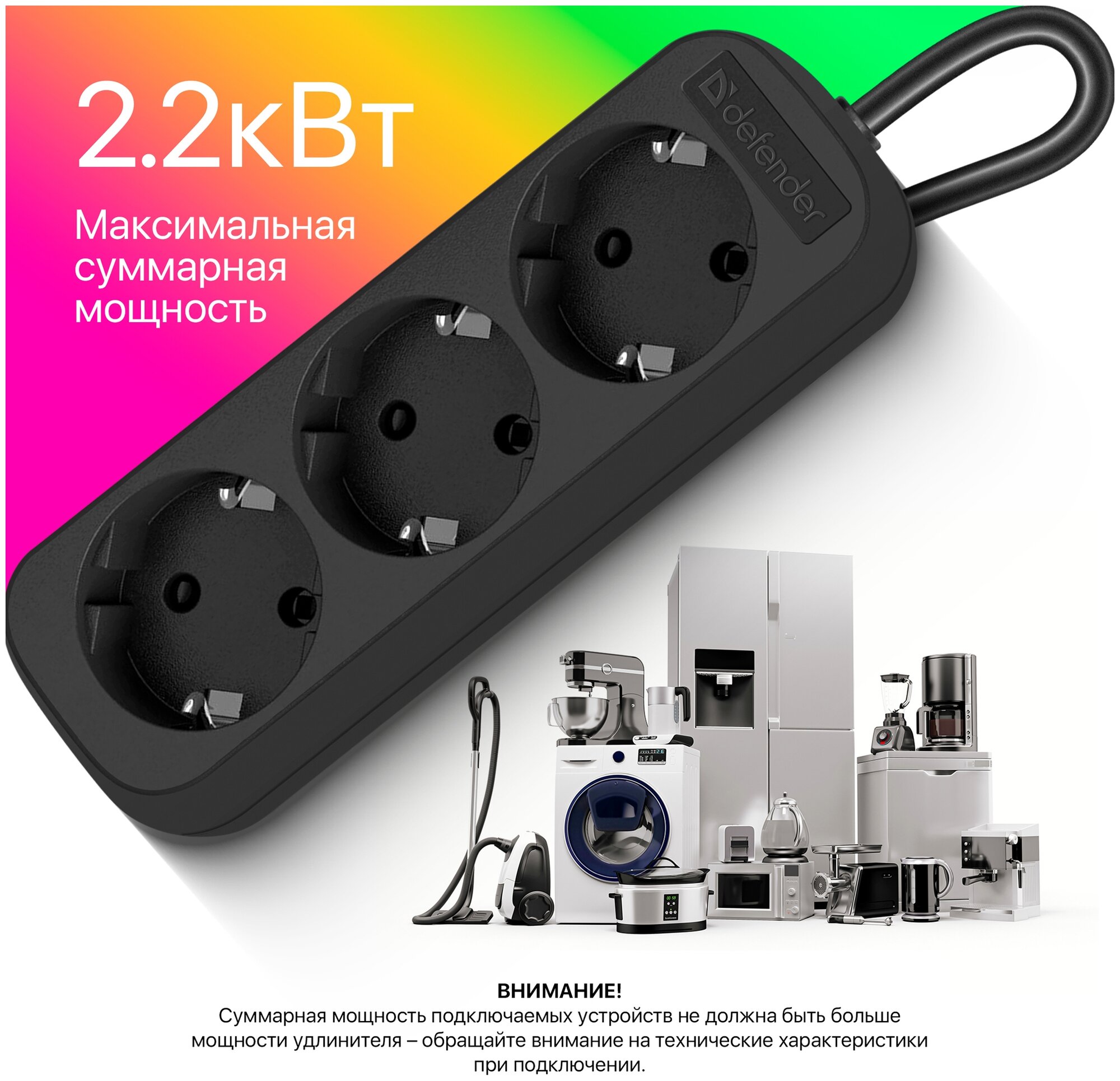 Сетевой удлинитель DEFENDER M350 5м черный [99323]