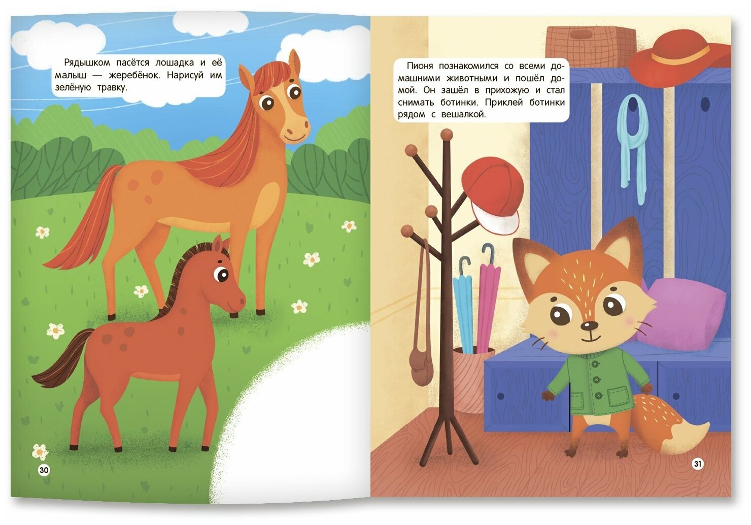 В книгах серии «Мои первые развивашки» малыш познакомится с лисёнком Пионей и отправится вместе с ним в путешествие навстречу знаниям. Он потренирует логическое мышление и внимание, научится различать цвета и считать. Кроме того, на страницах книг этой серии его ждут весёлые игры с лабиринтами, раскраски и задания с наклейками!