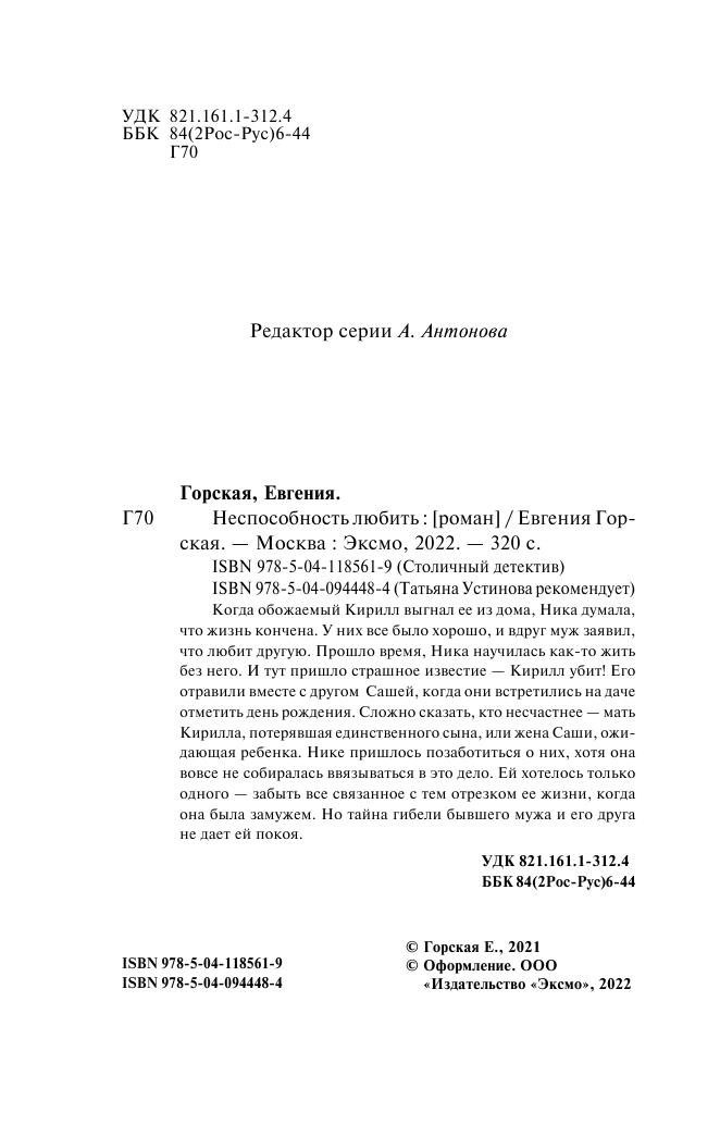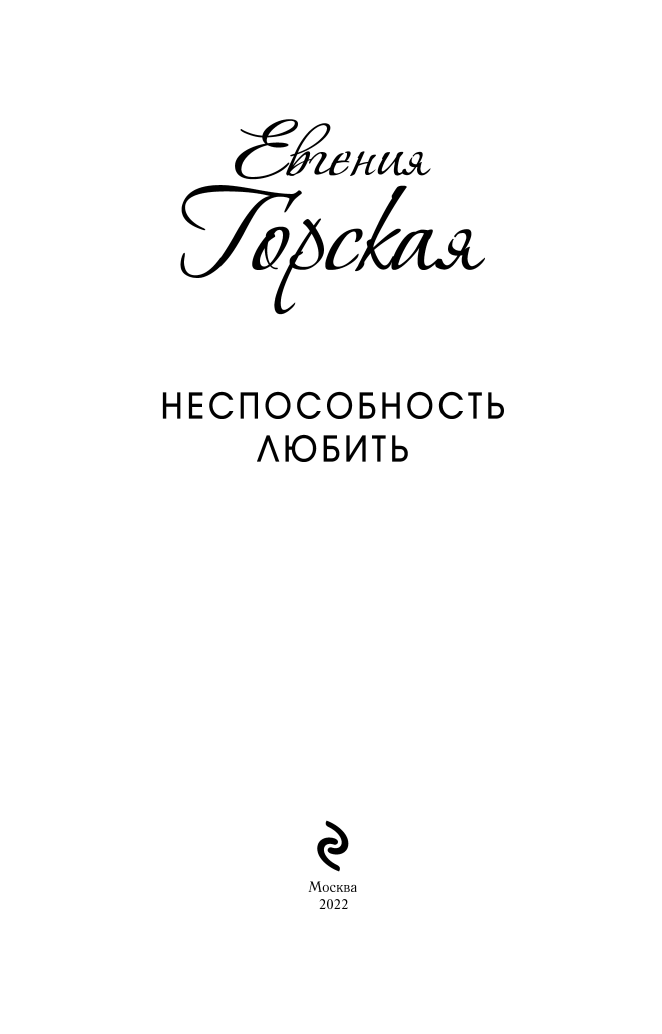 Книга: Неспособность любить (Евгения Горская); Эксмо, Редакция 1, 2022