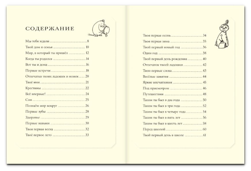 Первые этапы жизни малыша - это целый мир, полный чудес. Важные события и поворотные моменты теперь не потеряются, ведь они будут записаны в книгу, где на каждом развороте живут Муми-тролль, Крошка Мю, Снифф и другие любимые персонажи вселенной Туве Янссон.