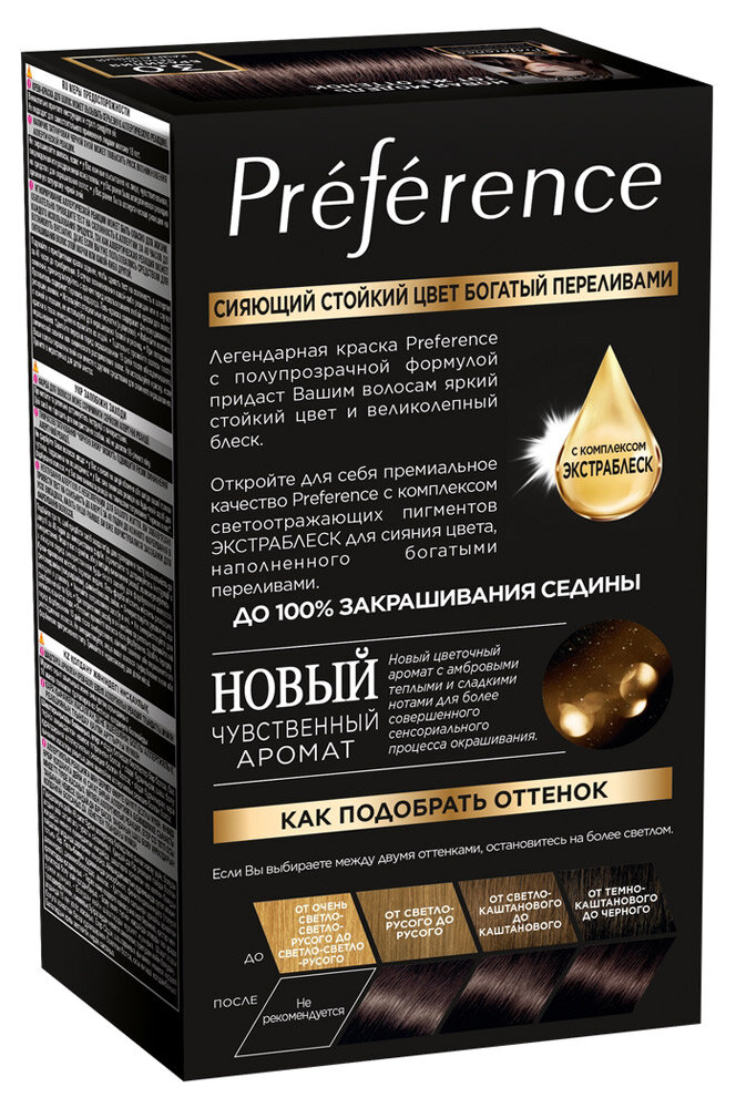 Краска для волос Лореаль Париж "Преферанс" - премиальное качество окрашивания! Она создана ведущими экспертами лабораторий Лореаль Париж в сотрудничестве с профессиональным колористом Кристофом Робином. В результате исследований был разработан уникальный состав краски, основанный на более объемных красящих пигментах. Стойкая краска способна дольше удерживаться в структуре волос, создавая неповторимый яркий цвет, устойчивый к вымыванию и возникновению тусклости. Комплекс Экстраблеск добавит блеска насыщенному цвету волос. Красивые шелковые волосы с насыщенным цветом на протяжении 8 недель после окрашивания!