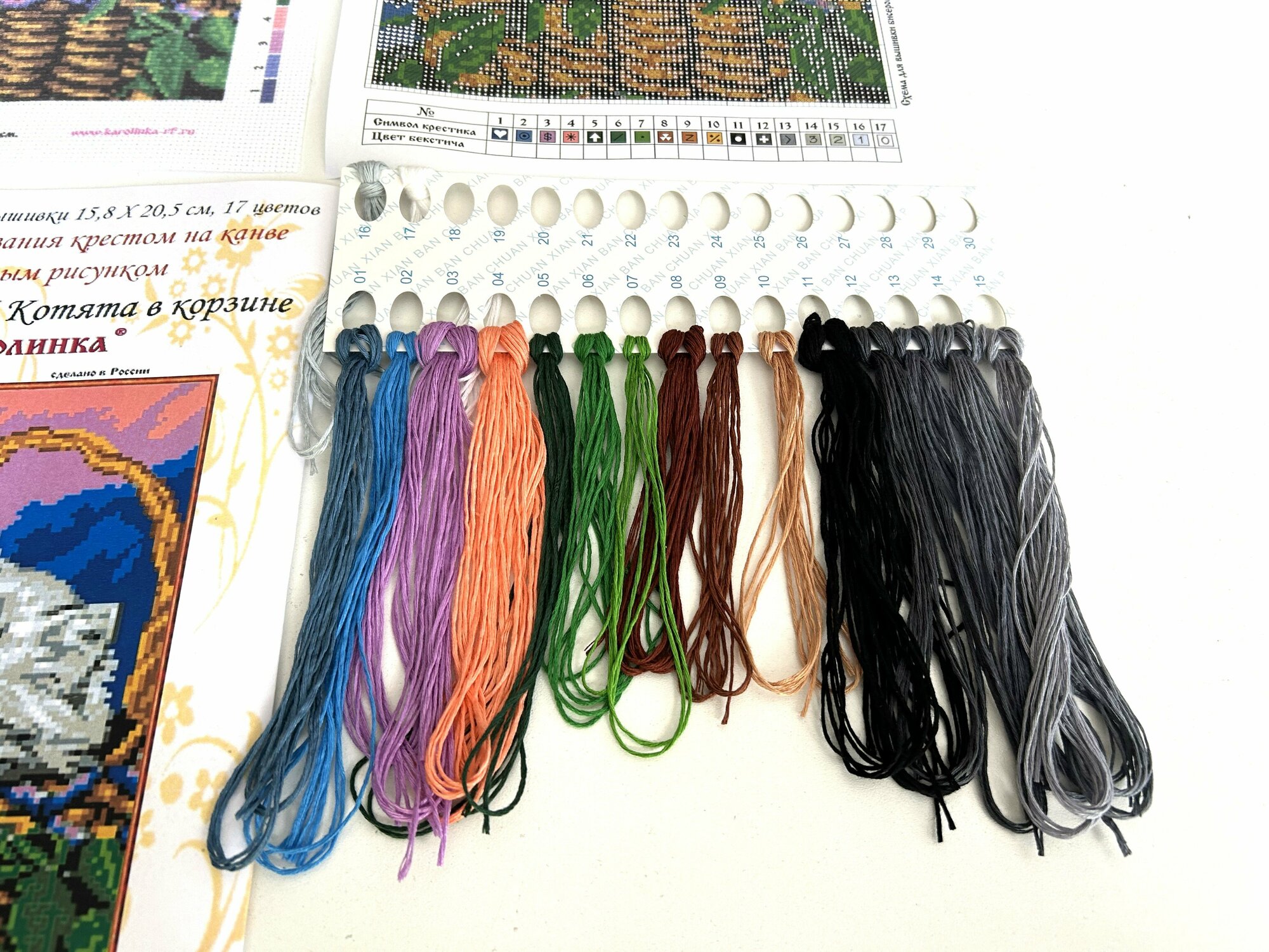 | В набор входит | канва Aida 14 с нанесенным рисунком, хлопковое мулине, игла, цветная символьная схема, инструкция по вышиванию |