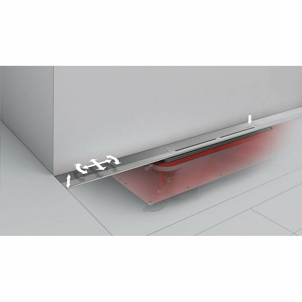 Душевой лоток Tece Drainprofile 90 670910 из нержавеющей стали для дренажа душа, для монтажа на плиточный клей над бетонной стяжкой и уплотнением. Настоящее немецкое качество. Надежные гидроизолирующие элементы.