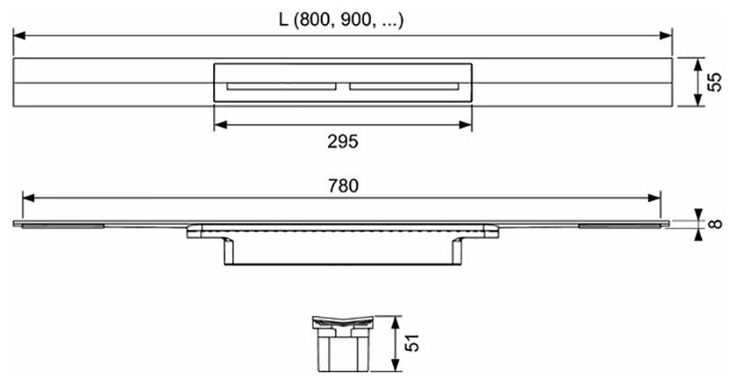 - Размер решетки (ДхШ) 900 х 55 мм.