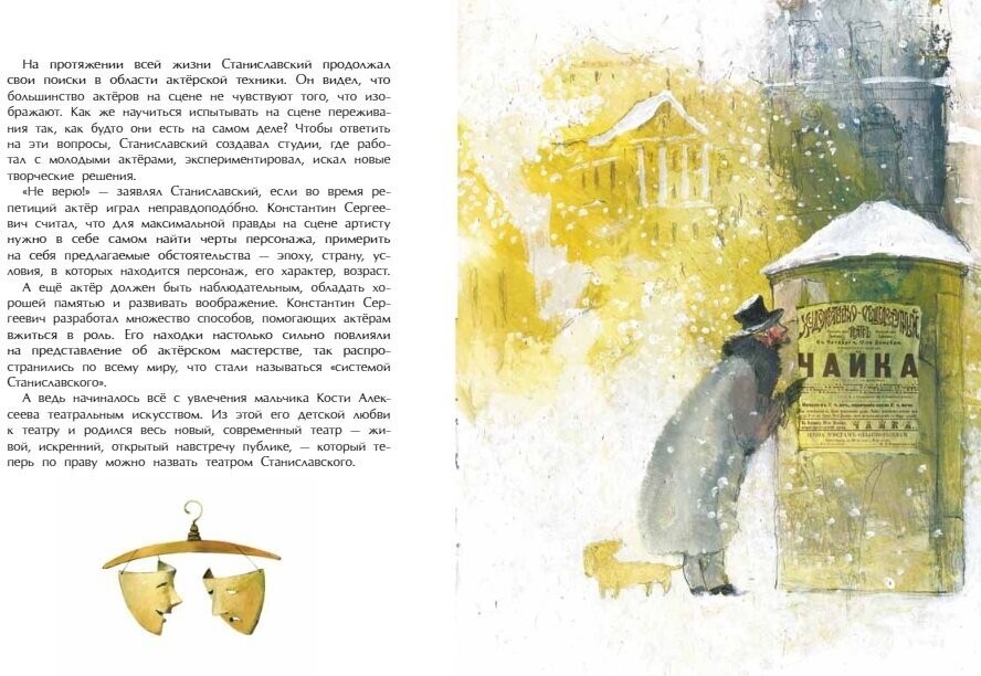Захватывающая жизненная история адаптированная для маленьких читателей, которая расскажет про то, что такое театр и спектакль, и про то как это создавалось, а еще про целеустремленного маленького Костю, который впоследствии стал всемирно известным режиссером. Много красочных иллюстраций, крупный шрифт, легко читается и интересно и для детей и для взрослых.