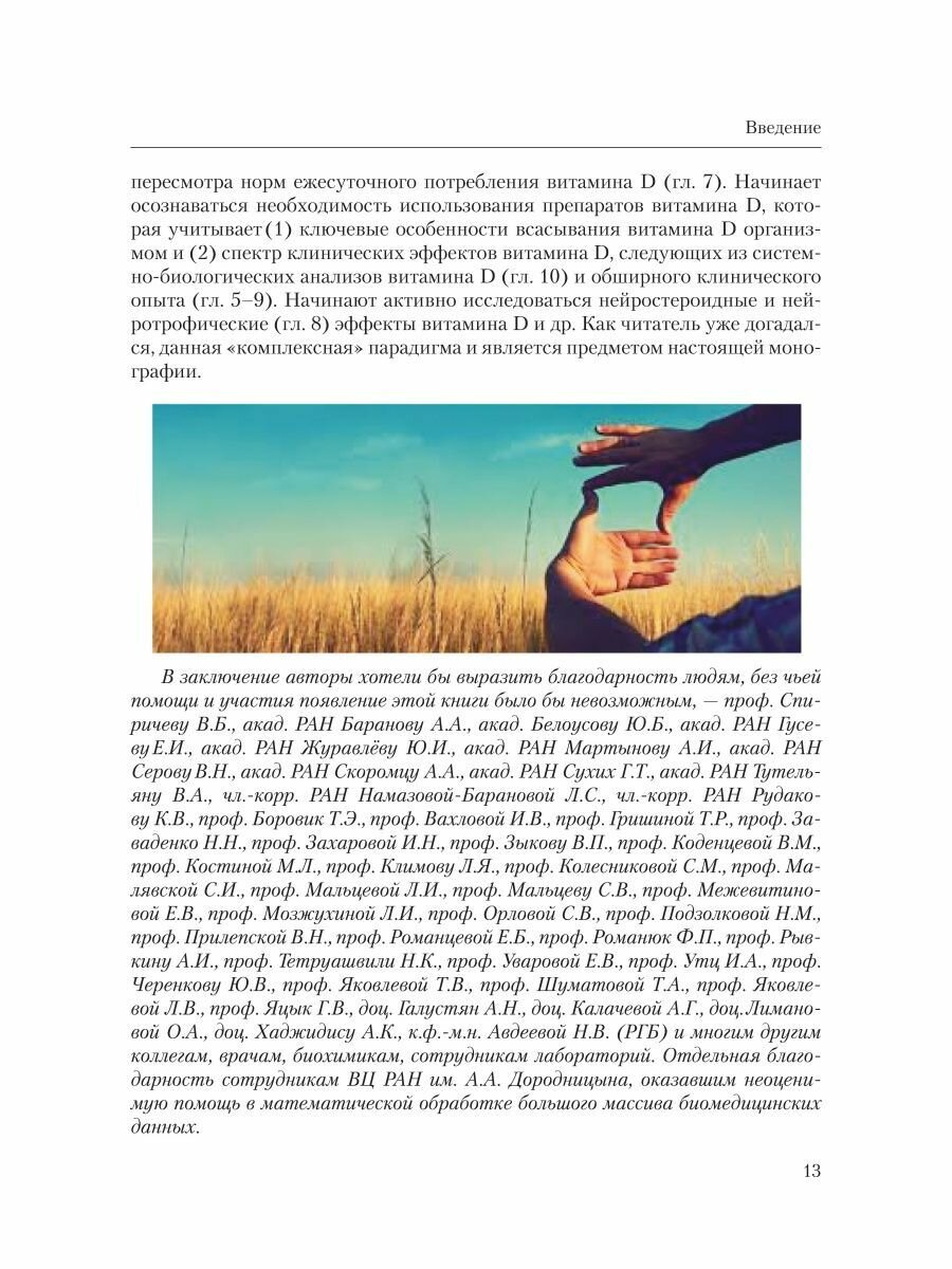 Описаны результаты комплексного анализа эффектов воздействия витамина D, который учитывает результаты эпидемиологических, клинических, биохимических, молекулярно-биологических исследований этого гормона-витамина. Анализ проведен с использованием современных информационных технологий для интеллектуального анализа биомедицинских данных, поиска релевантных научных публикаций, построения точных алгоритмов распознавания в задачах биоинформатики. В результате комплекс фундаментальных научных фактов относительно витамина D упорядочен в стройную систему, на основании которой сделаны неочевидные выводы, весьма важные для осознанного и эффективного использования препаратов витамина D как мощного и разностороннего инструмента клинической практики. Обсуждаются, в частности, нормы метаболитов витамина D в крови и вопросы дозирования препаратов витамина D.