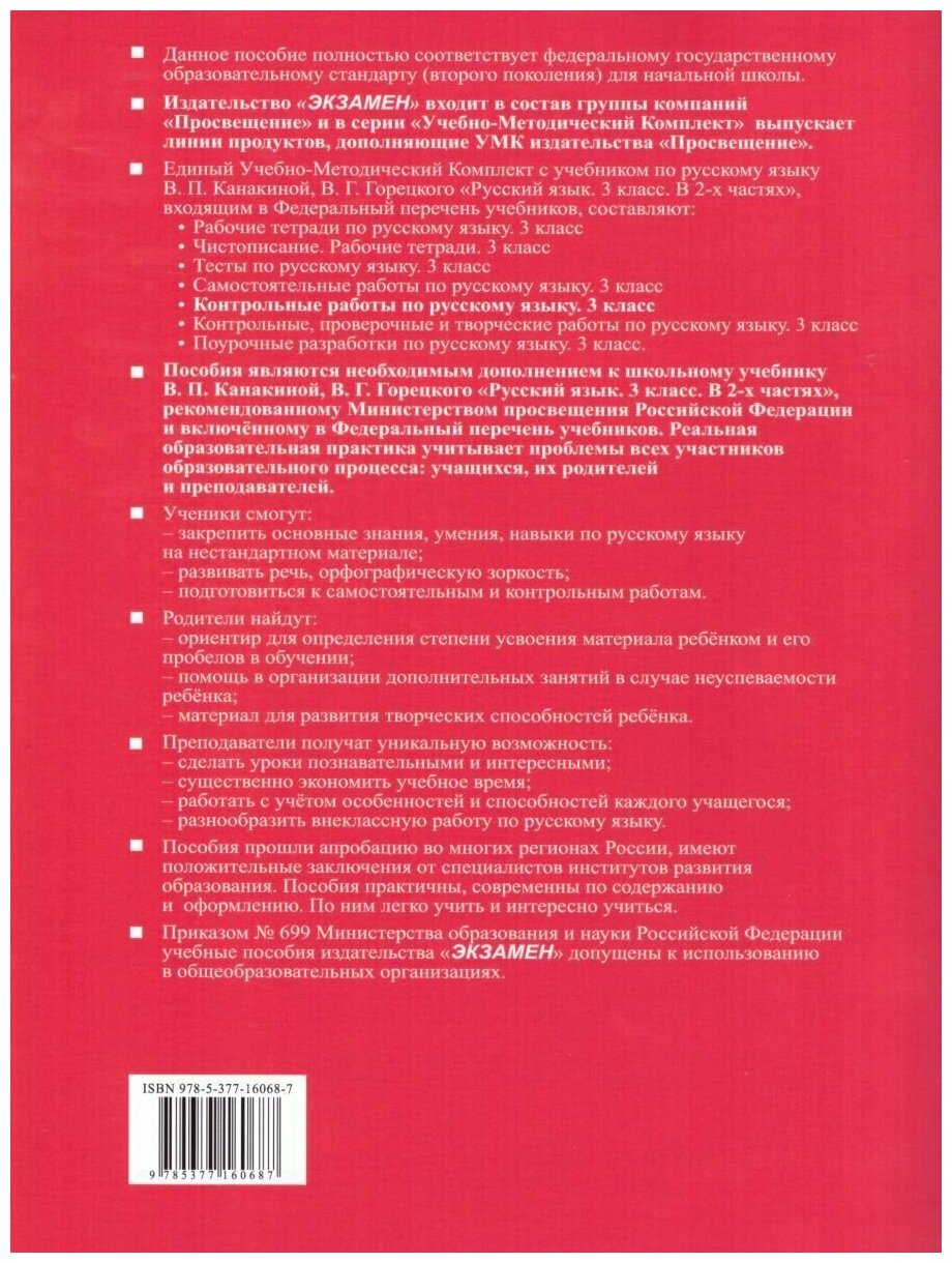 Русский язык. 3 класс. Контрольные работы к учебнику В.П. Канакиной и др. Часть 1. ФПУ. (Ольга Николаевна Крылова); Экзамен, 2022