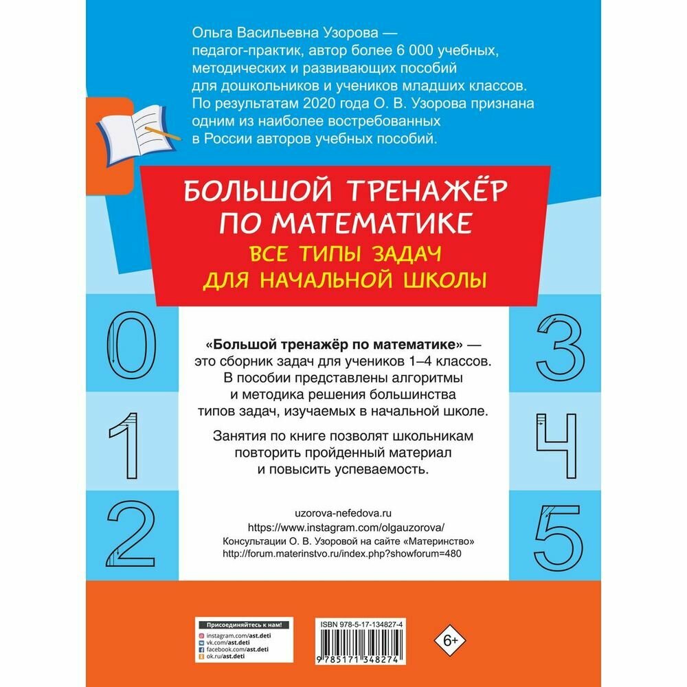 Большой тренажер по математике. Все типы задач для начальной школы (О. В. Узорова); Издательство АСТ, 2021