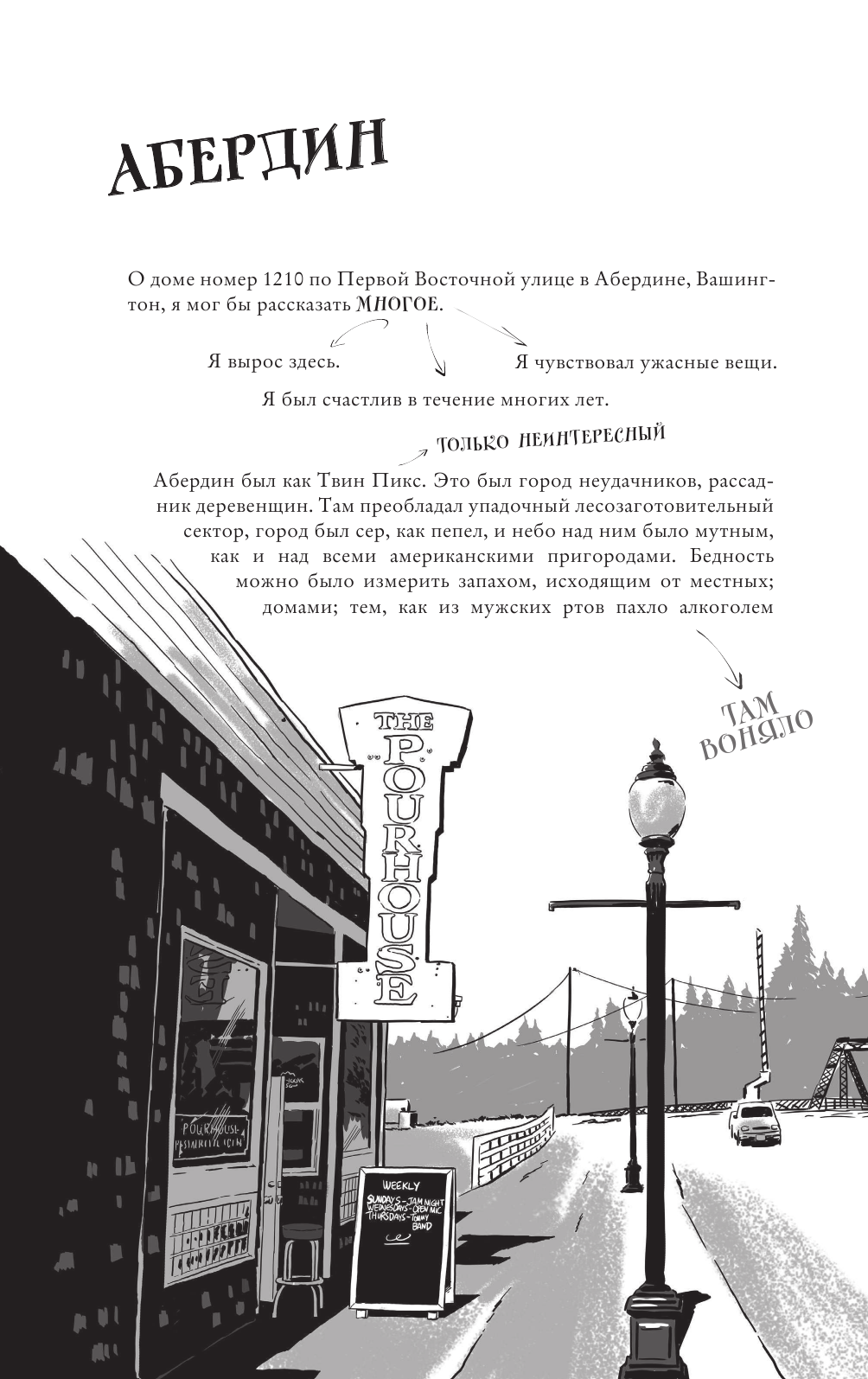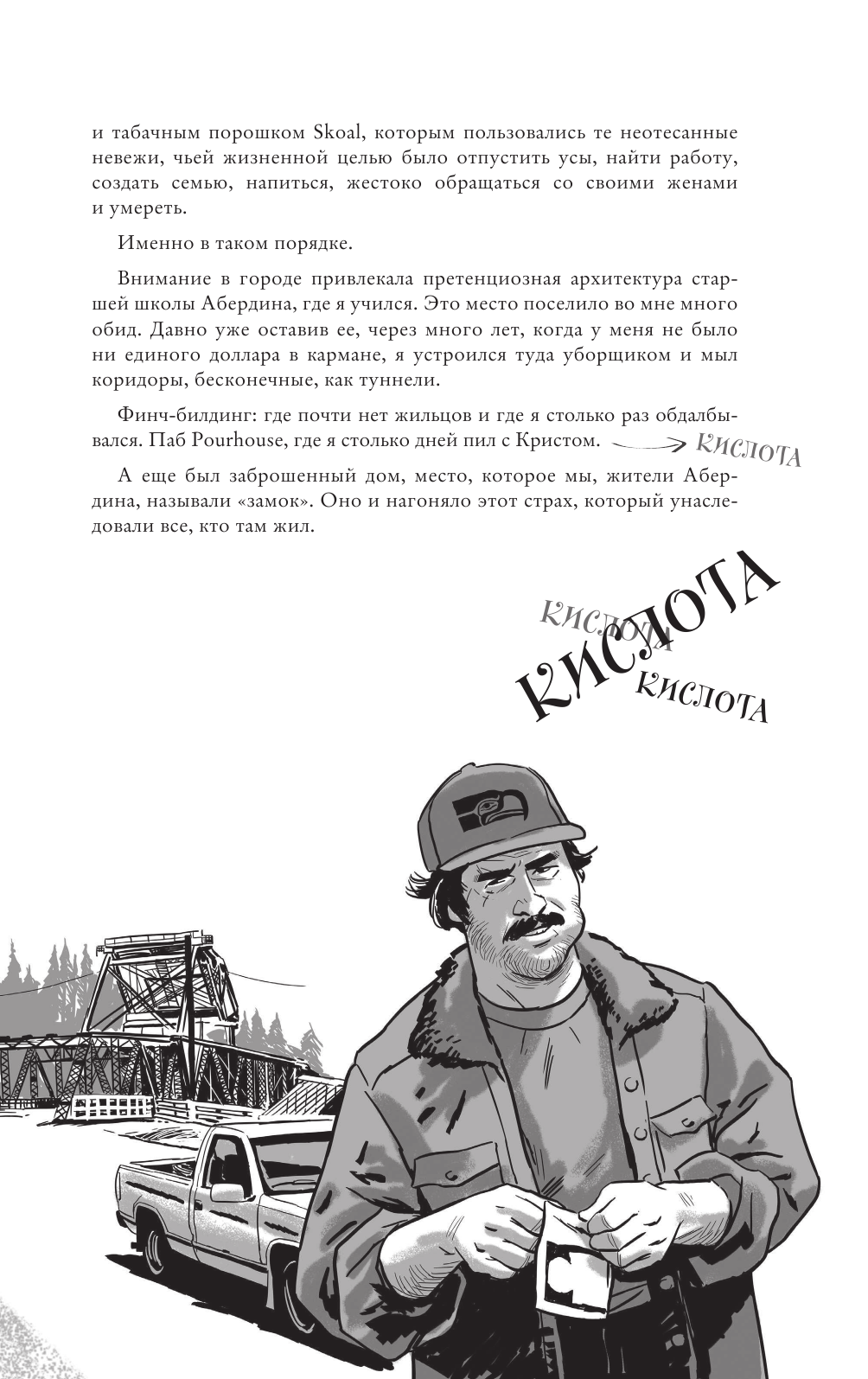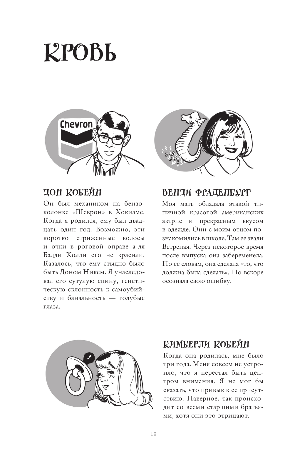 Считаю, эта книга идеальна для того, если вы только знакомитесь с Nirvana и Куртом Кобейном и особо не хотите внедряться в какие-то глубины многостраничных биографий. От лица Курта нас ведут через основные вехи его жизни до самого ее конца. Сопровождают все это классные иллюстрации, я действительно залюбовалась некоторыми из них.