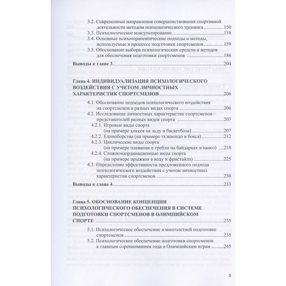В монографии рассмотрена проблема психологического обеспечения подготовки спортсменов, которая является одним из приоритетных направлений повышения эффективности соревновательной деятельности в современном олимпийском спорте. Разработана концепция психологического обеспечения в системе подготовки спортсменов в олимпийском спорте и ее концептуальные основы (цель, задачи, методы, принципы, условия, факторы влияния, критерии эффективности, этапы выполнения, алгоритм реализации). В предлагаемой концепции сочетаются методология проведения психодиагностических исследований и система психологической коррекции личности спортсмена в олимпийском спорте во взаимосвязи с этапами многолетнего совершенствования с учетом особенностей соревновательной деятельности отдельных видов спорта согласно олимпийской классификации. Направления реализации концепции представлены в виде стратегии и программы психологического обеспечения спортсменов. Определена эффективность разработанной концепции психологического обеспечения.