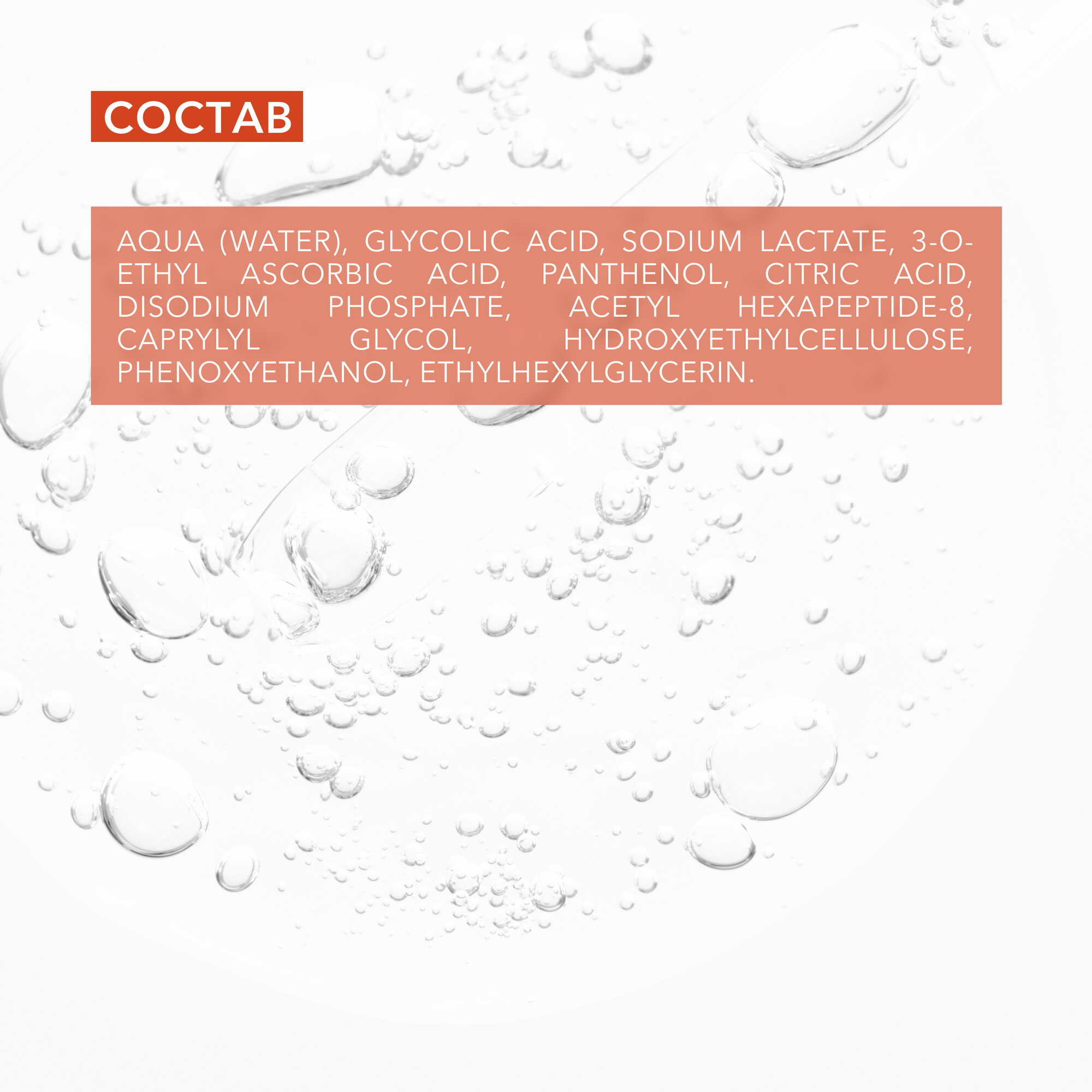 | Состав | 3-0-Ethyl Ascorbic Acid; Acetyl Hexapeptide-8; Aqua (Water); Caprylyl Glycol; Citric Acid; Disodium Phosphate; Ethylhexylglycerin; Glycolic Acid; Hydroxyethylcellulose; Panthenol; Phenoxyethanol; Sodium Lactate |