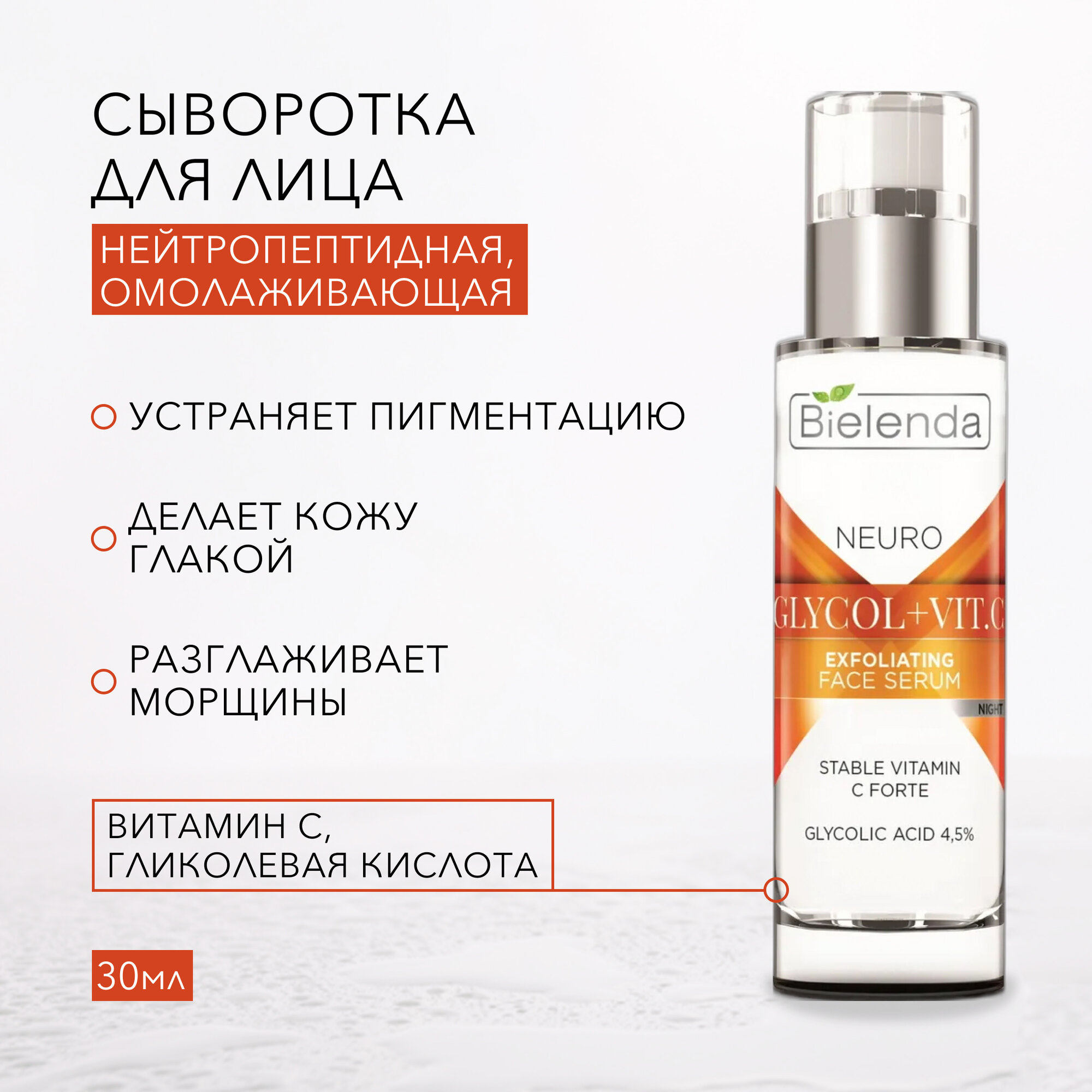 Сыворотка отшелушивающая нейтропептидная омолаживающая ночная neuro glicol+vit с bielenda 30 мл (1303912)