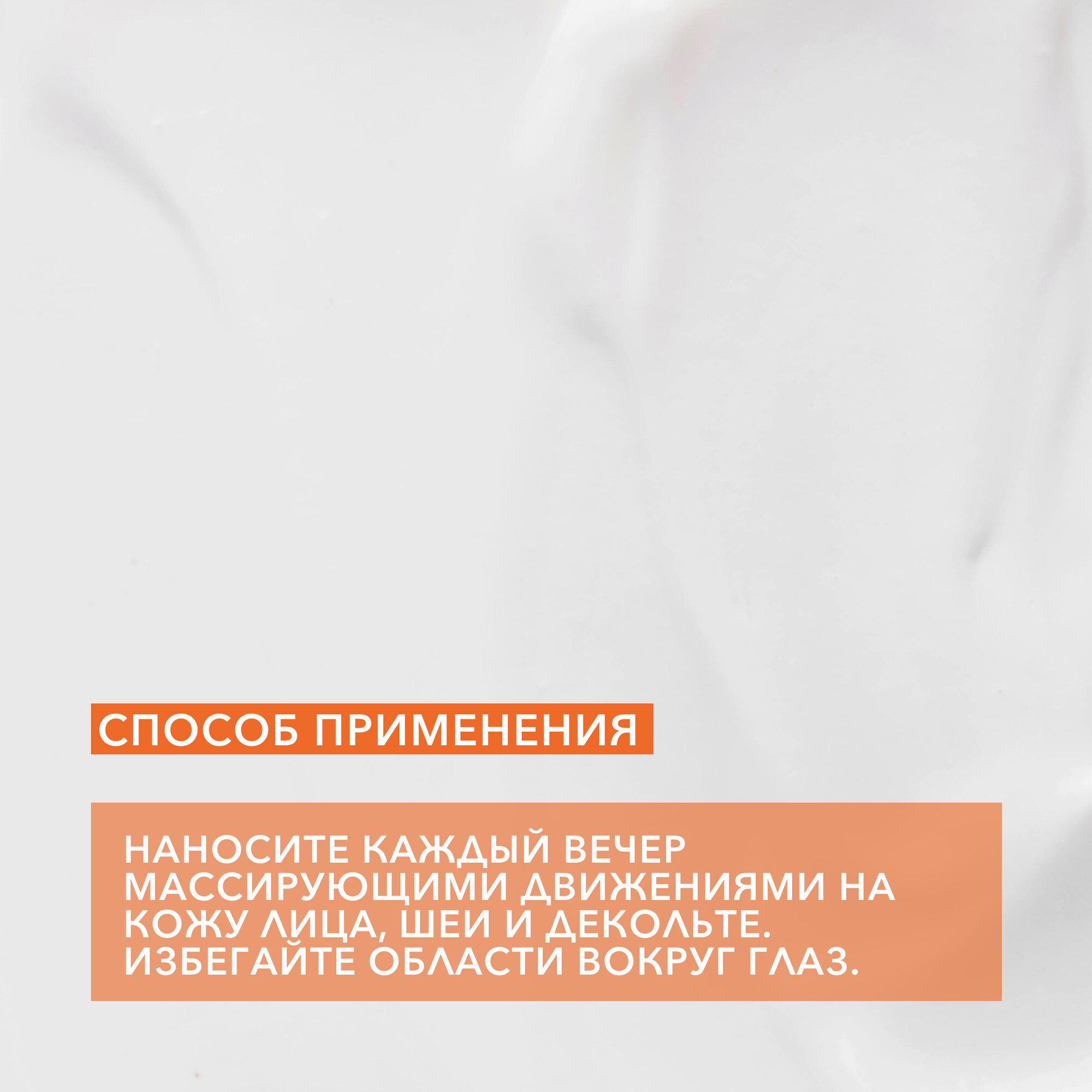 Крем с очень активной формулой - стабилизированный витамин С обеспечивает двойное отшелушивание кожи, что приводит к тщательному восстановлению и обновлению, а также разглаживанию морщин и уменьшению пигментации. Формула обогащена нейропептидом, который имеет филлероподобный эффект, благодаря чему предотвращает образование борозд и мимических линий. Масла в составе удут восстанавливать, и увлажнять кожу. Регулярное использование препарата сужает поры, уменьшает жирный блеск кожи, интенсивно увлажняет. SPF 20 защищает от опасных солнечных лучей.