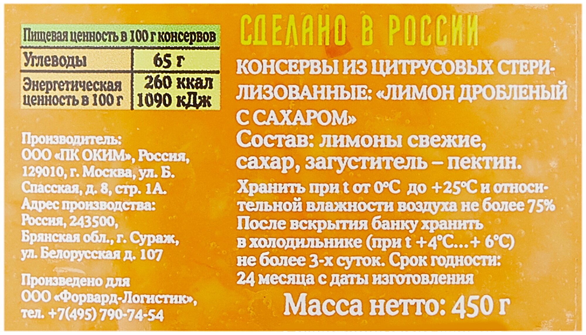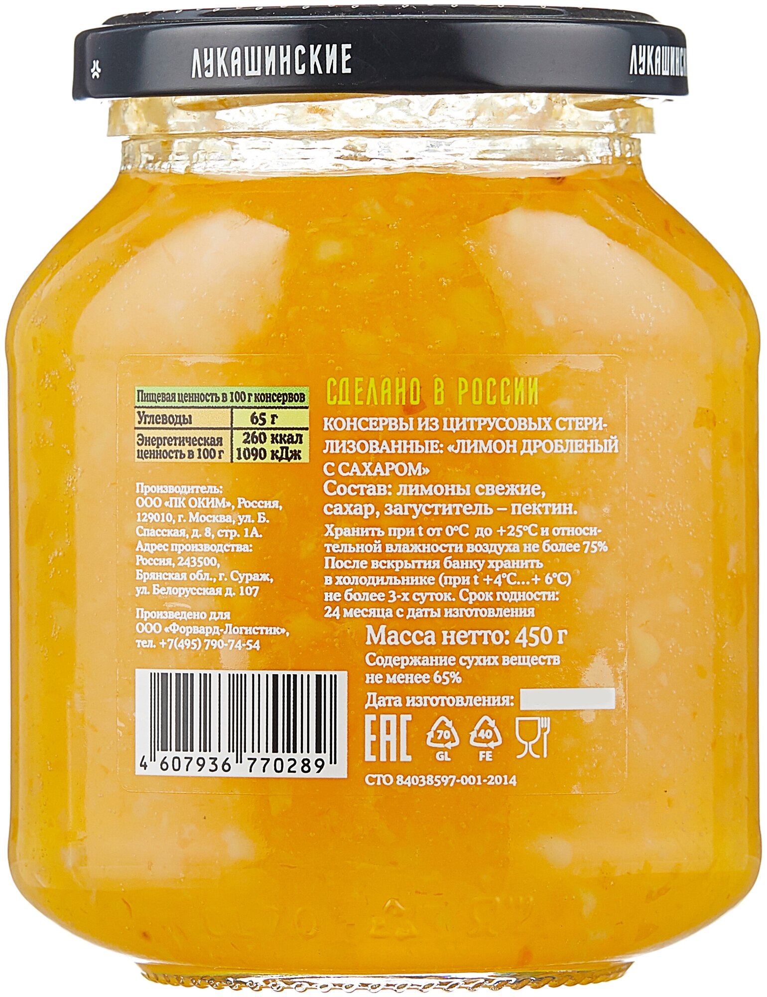 Лимон с сахаром Лукашинские дробленный 450г ПК ОКИМ