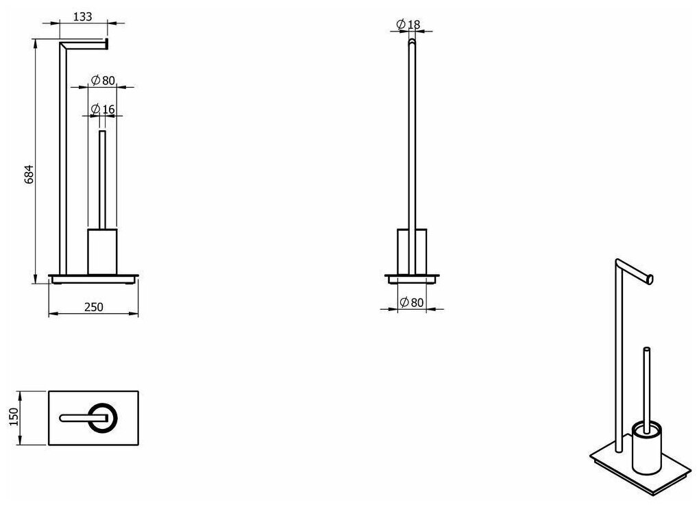 Напольная стойка Black Edition 72981-BP круглая для ерша и бумагодержателя - идеально подходит для создания стильного и практичного интерьера. Сделан из высококачественной латуни, что гарантирует длительный срок службы с сохранением начальной функциональности.