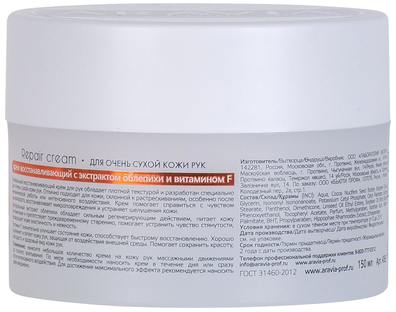 Aravia professional Крем восстанавливающий для очень сухой кожи рук с экстрактом облепихи и витамином F 150 мл (Aravia professional ) (ЭХ99989406002)