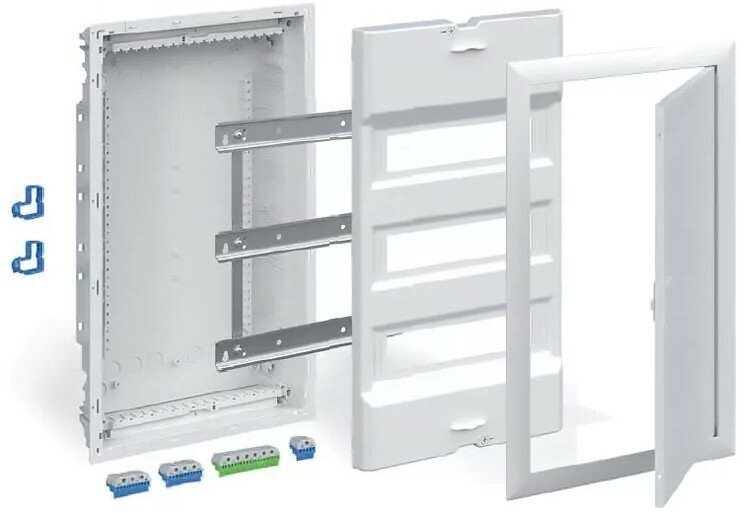 При разработке распределительных шкафов ABB UK636E3 дизайнеры подумали не только о собственниках жилья, но и о людях, которые будут заниматься установкой, подключением и сборкой щита. Разметка стены для ниши и ввод кабелей в бокс UK600 не займут много времени и окажутся простейшими задачами. Даже если количество подключаемых нагрузок велико, то расширенные зоны свободного пространства для прокладки проводников, а также специальные аксессуары для их организации в аккуратные пучки позволят создать красивый щит, который станет предметом профессиональной гордости и примером, привлекающим будущих заказчиков. Электротехнические шкафы UK600: • В 2 раза больше места для подключения кабелей (по сравнению с щитами UK500) • Размер щита до 5 DIN-реек • Держатель для питающих проводников • Возможность введения кабелей сбоку и сзади • Возможность установки замка с ключом • Рамка с функцией адаптации под неровную стену • Возможность соединения шкафов по вертикали и горизонтали Технические характеристики: - Номинальный ток In 63 A - Ударостойкость: IK07 - Соответствуют стандартам DIN EN 60670-24, DIN 43871 - Возможность изменения направления открывания двери без инструмента - Цвет: Белый, RAL 9016 - Рама с дверью из листовой стали с возможностью выравнивания - В комплекте винтовые клеммные блоки N/PE и набор маркировок