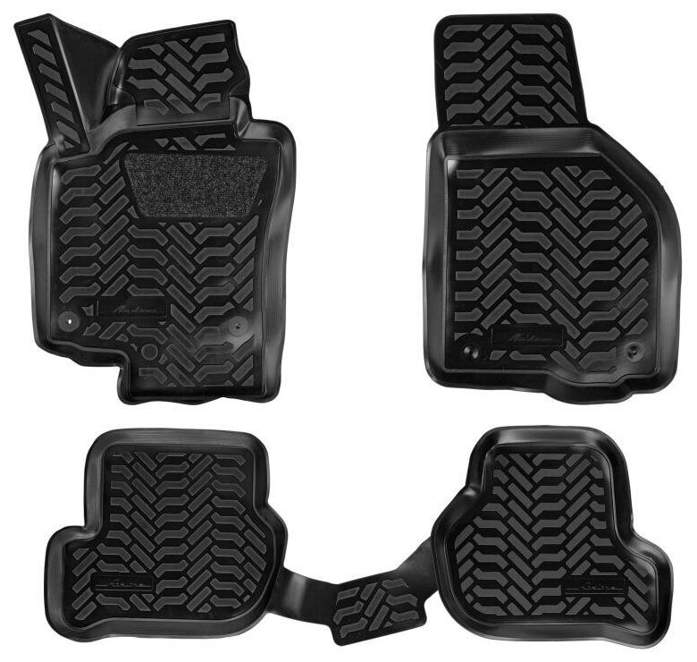 Ковры изготовлены из современного полимера ТЭП, который не теряет эластичность и сохраняет форму при пониженных и повышенных температурах. Ковры идеально повторяют форму пола выбранного автомобиля за счет снятия его индивидуальных размеров 3D сканером. Ковры имеют современный рисунок имитирующий протектор шин. У большинства моделей водительский коврик имеет ворсовый подпятник для предотвращения соскальзывания ноги, а так же оснащены крепежом для крепления их в штатных местах. Ковры преображают вид салона автомобиля и защищают напольный ковролин от истирания, намокания и загрязнений на долгое время. Преимущества ковров: эластичный материал стойкие к повышенным и пониженным температурам (- 40/+ 65 ?С) идеально повторяют форму пола авто(3D сканирование) не имеют неприятного запахавысокие бортикимодный дизайн