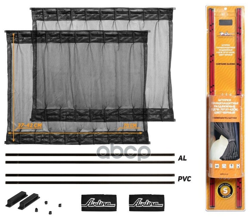 | Доп. наименование Водопад | Шторки солнцезащитные Airline ASPSS11 раздвижные S (ДхВ:70х37-42 см) черный |