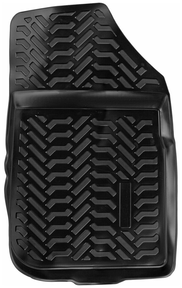 Ковры изготовлены из современного полимера ТЭП, который не теряет эластичность и сохраняет форму при пониженных и повышенных температурах. Ковры идеально повторяют форму пола выбранного автомобиля за счет снятия его индивидуальных размеров 3D сканером. Ковры имеют современный рисунок имитирующий протектор шин. У большинства моделей водительский коврик имеет ворсовый подпятник для предотвращения соскальзывания ноги, а так же оснащены крепежом для крепления их в штатных местах. Ковры преображают вид салона автомобиля и защищают напольный ковролин от истирания, намокания и загрязнений на долгое время. Преимущества ковров: эластичный материал стойкие к повышенным и пониженным температурам (- 40/+ 65 ?С) идеально повторяют форму пола авто(3D сканирование) не имеют неприятного запахавысокие бортикимодный дизайн