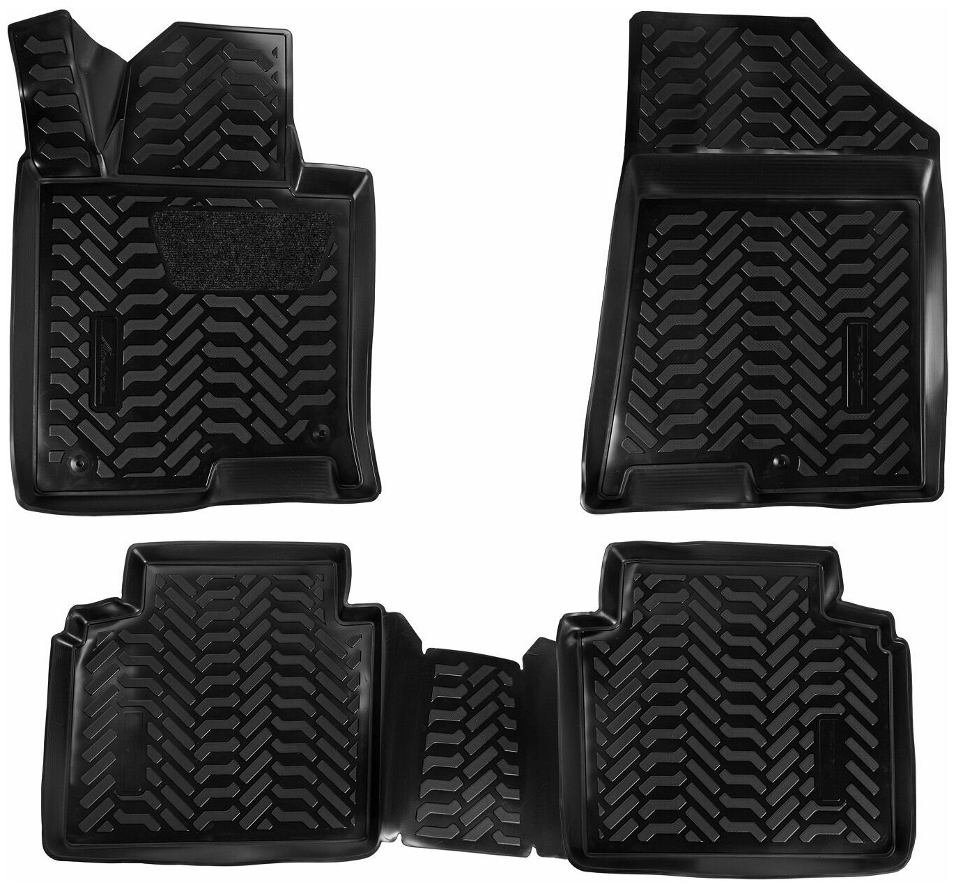 Ковры изготовлены из современного полимера ТЭП, который не теряет эластичность и сохраняет форму при пониженных и повышенных температурах. Ковры идеально повторяют форму пола выбранного автомобиля за счет снятия его индивидуальных размеров 3D сканером. Ковры имеют современный рисунок имитирующий протектор шин. У большинства моделей водительский коврик имеет ворсовый подпятник для предотвращения соскальзывания ноги, а так же оснащены крепежом для крепления их в штатных местах. Ковры преображают вид салона автомобиля и защищают напольный ковролин от истирания, намокания и загрязнений на долгое время. Преимущества ковров: эластичный материал стойкие к повышенным и пониженным температурам (- 40/+ 65 ?С) идеально повторяют форму пола авто(3D сканирование) не имеют неприятного запахавысокие бортикимодный дизайн