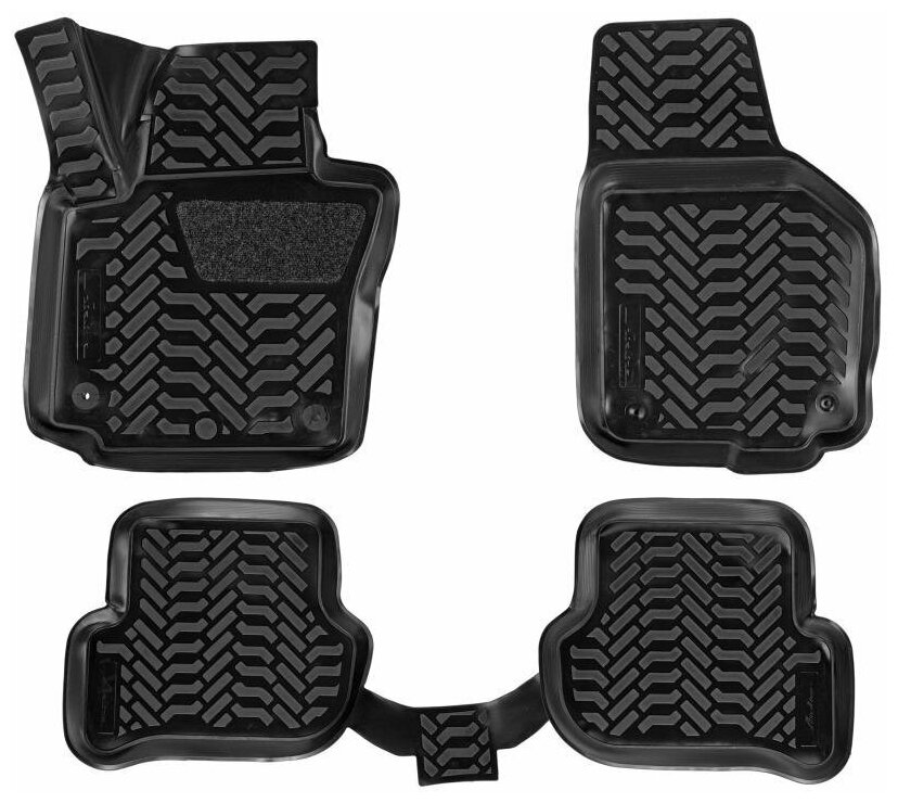 Ковры изготовлены из современного полимера ТЭП, который не теряет эластичность и сохраняет форму при пониженных и повышенных температурах. Ковры идеально повторяют форму пола выбранного автомобиля за счет снятия его индивидуальных размеров 3D сканером. Ковры имеют современный рисунок имитирующий протектор шин. У большинства моделей водительский коврик имеет ворсовый подпятник для предотвращения соскальзывания ноги, а так же оснащены крепежом для крепления их в штатных местах. Ковры преображают вид салона автомобиля и защищают напольный ковролин от истирания, намокания и загрязнений на долгое время. Преимущества ковров: эластичный материал стойкие к повышенным и пониженным температурам (- 40/+ 65 ?С) идеально повторяют форму пола авто(3D сканирование) не имеют неприятного запахавысокие бортикимодный дизайн