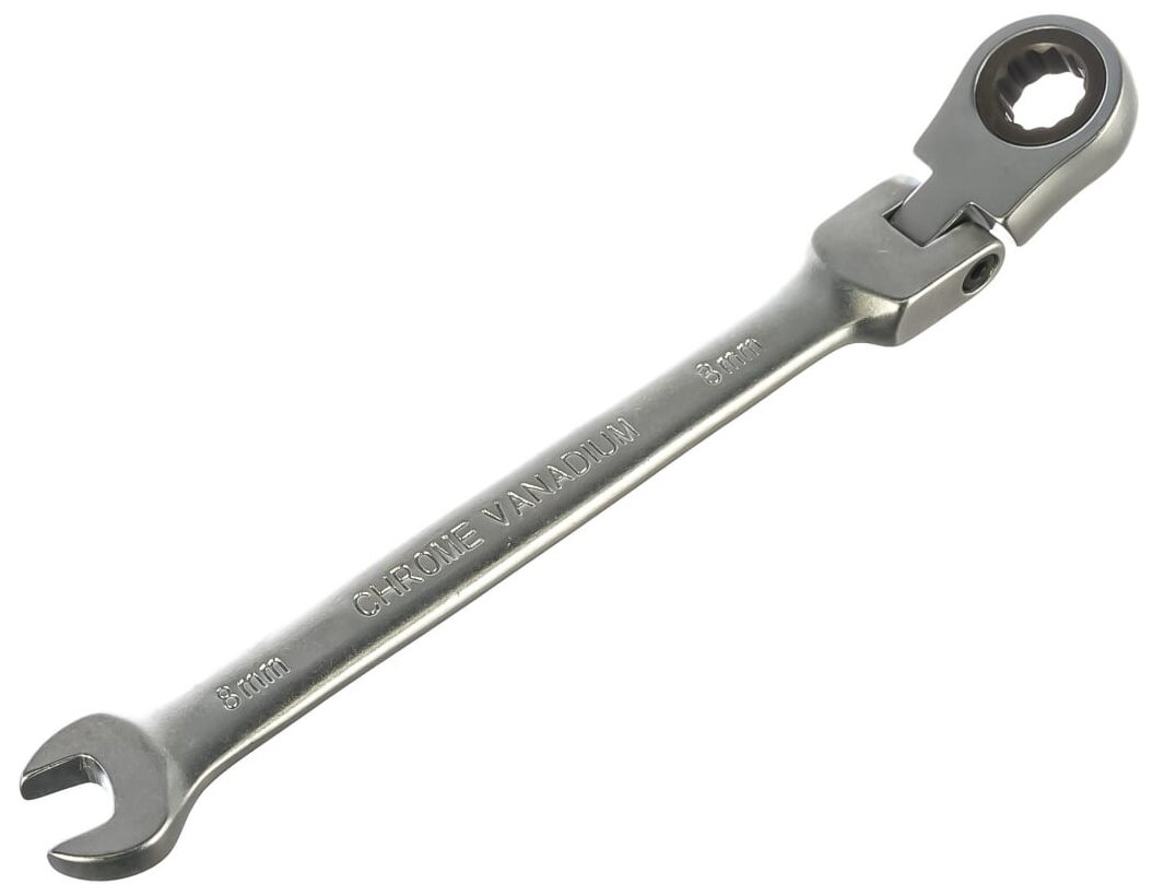 Ключ комбинированный трещоточный используется для работы с любым крепежом, особенно в труднодоступных местах. Ключ изготовлен в виде класического комбинированного гаечного ключа. На одной стороне имеется рожковый профиль, на второй стороне накидной профиль с 12ю гранями и встроенным храповым механизмом. Храповик имеет 72 зуба, что позволяет работать в очень ограниченном пространстве с углом возврата ключа всего 5°. При этом конструкция храповика изготовлена из высококачественной хром-ванадиевой стали, что обеспечивает передачу повышенного крутящего момента.