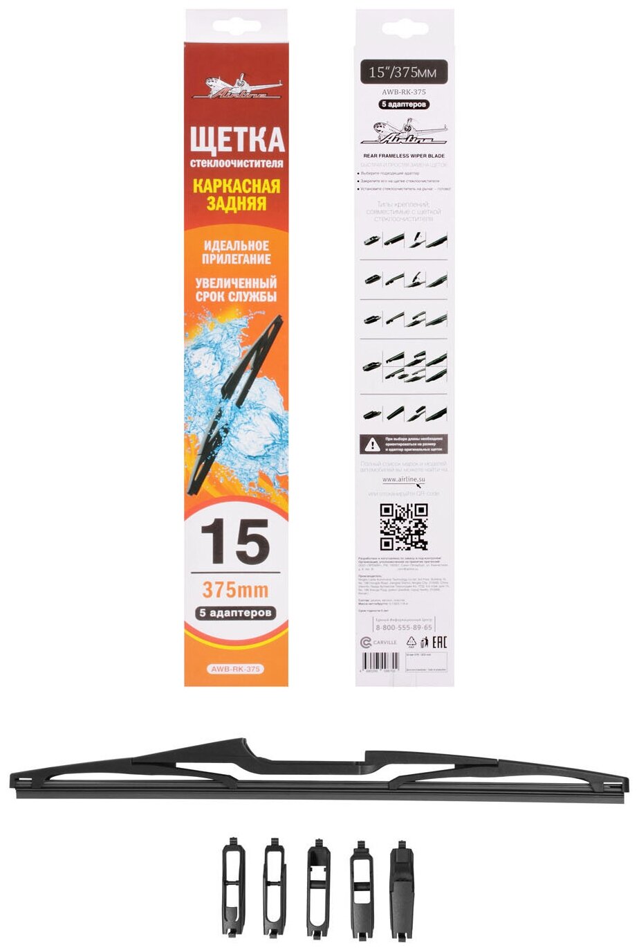 | Доп. наименование Водопад | Щетка стеклоочистителя Airline AWBRK375 375 мм (15") задняя каркасная, 5 адаптеров |