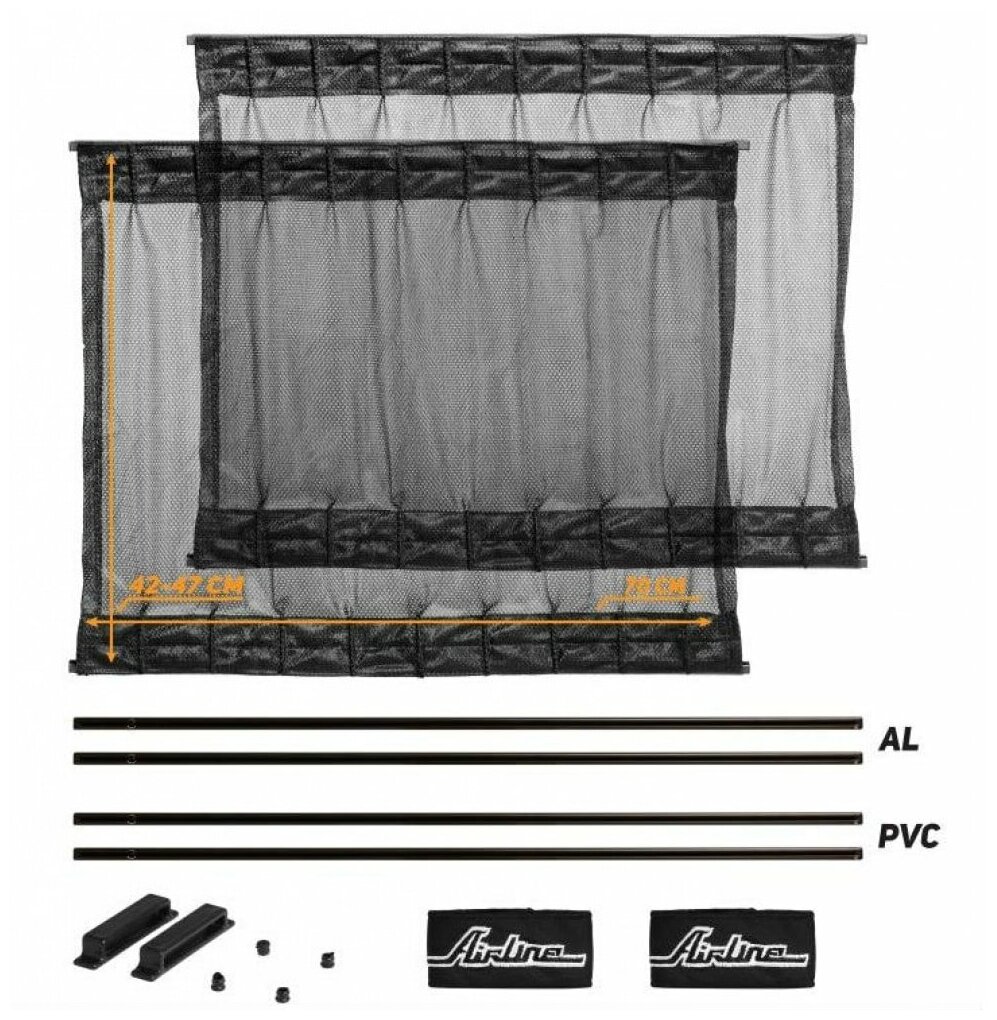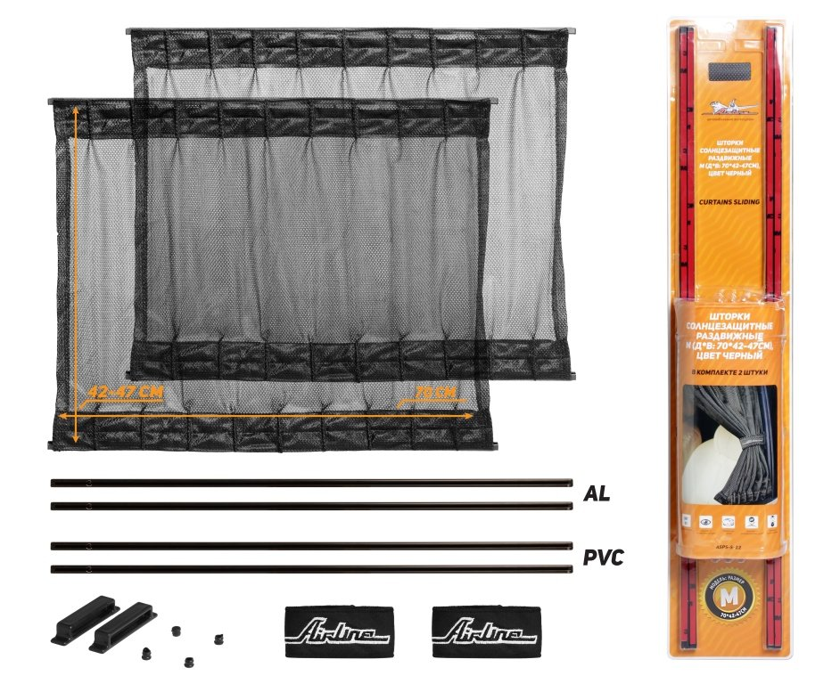 Шторки солнцезащитные, раздвижные. Большим преимуществом таких шторок является удобство в применении и большая площадь их покрытия, что обеспечивает полную конфиденциальность пассажирам. К преимуществу данного вида шторок можно также отнести их особый вид, способный украсить салон, предать ему домашний уют и комфорт. Шторки AIRLINE имеют универсальное крепление и различаются по размерам, что позволяет подобрать необходимый вариант под ваш автомобиль. Преимущества: - легкая установка; - скрывают от посторонних взглядов; - придают уют салону; - защищают от ультрафиолетовых лучей; - защищают салон от нагрева; - не мешают открытию окна.