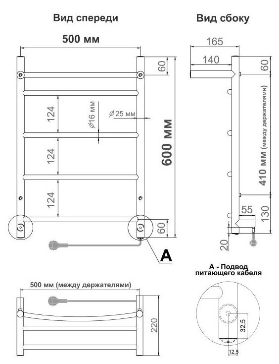 Полотенцесушитель электрический INDIGO Arc с полкой в размере 600х500 (ВхШ) выбирают за его классический вид – лесенки и универсальность. Модель оснащена кнопкой включения на нижней части стойки. Универсальность изделия предусматривает подключение через прямой провод, который переставляется на нужную вам сторону или скрытое подключение без покупки дополнительного переходника. Длина прямого провода 1,2 метра. Изделие имеет полку для большего удобства и комфорта. Полотенцесушитель Arc относится к энергоэффективным изделиям, потребляемая мощность в данном размере 85 Вт. Специальная технология нагревательного кабеля защищает полотенцесушитель от перегрева что влияет на длительные сроки службы. В комплектации идут 4 телескопических держателя, комплект для монтажа и гарантийный паспорт. Полотенцесушитель INDIGO Arc с полкой застрахован и имеет гарантию 3 года. Выбирая INDIGO вы получаете надежный продукт из нержавеющей стали с гарантией качества от Российского производителя.