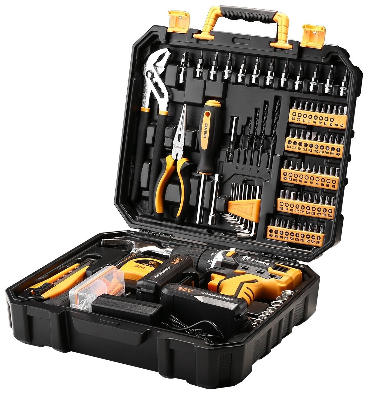 | Комплектация | дрель, аккумулятор 1, 5 а.ч, 2 шт. биты, 60 шт. головки 1/4:5, 6, 7, 8, 9, 10, 11, 12, 13 мм, 9 шт. дрель-шуруповерт, 1 шт. зарядное устройство, 1 шт. зенковочная бита 6, 35 мм, 1 шт. кейс, 1 шт. крепеж, 79 шт. магнитный держатель бит 60 мм, 1 шт. отвертка-вороток 1/4, 1 шт. переходник 1/4, 1 шт. перьевые сверла 13, 16, 19 мм, 3 шт. сверла 1.5, 2, 2.5, 3, 3.5, 4, 4.5, 5, 5.5, 6 мм, 10 шт. сверла для обработки камня 3, 4, 5, 6, 8 мм, 5 шт. сверла по дереву 3, 4, 5, 6, 8 мм, 5 шт. торцовочные бит |