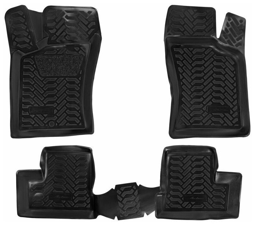 Ковры изготовлены из современного полимера ТЭП, который не теряет эластичность и сохраняет форму при пониженных и повышенных температурах. Ковры идеально повторяют форму пола выбранного автомобиля за счет снятия его индивидуальных размеров 3D сканером. Ковры имеют современный рисунок имитирующий протектор шин. У большинства моделей водительский коврик имеет ворсовый подпятник для предотвращения соскальзывания ноги, а так же оснащены крепежом для крепления их в штатных местах. Ковры преображают вид салона автомобиля и защищают напольный ковролин от истирания, намокания и загрязнений на долгое время. Преимущества ковров: эластичный материал стойкие к повышенным и пониженным температурам (- 40/+ 65 ?С) идеально повторяют форму пола авто(3D сканирование) не имеют неприятного запахавысокие бортикимодный дизайн