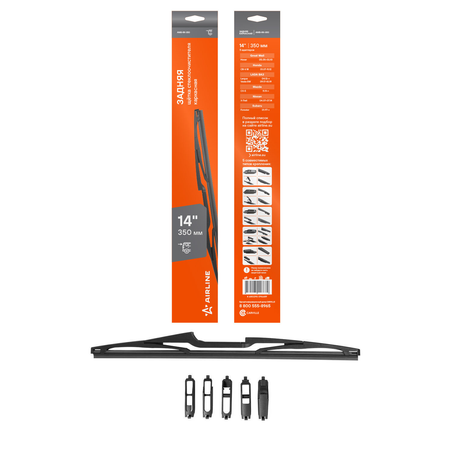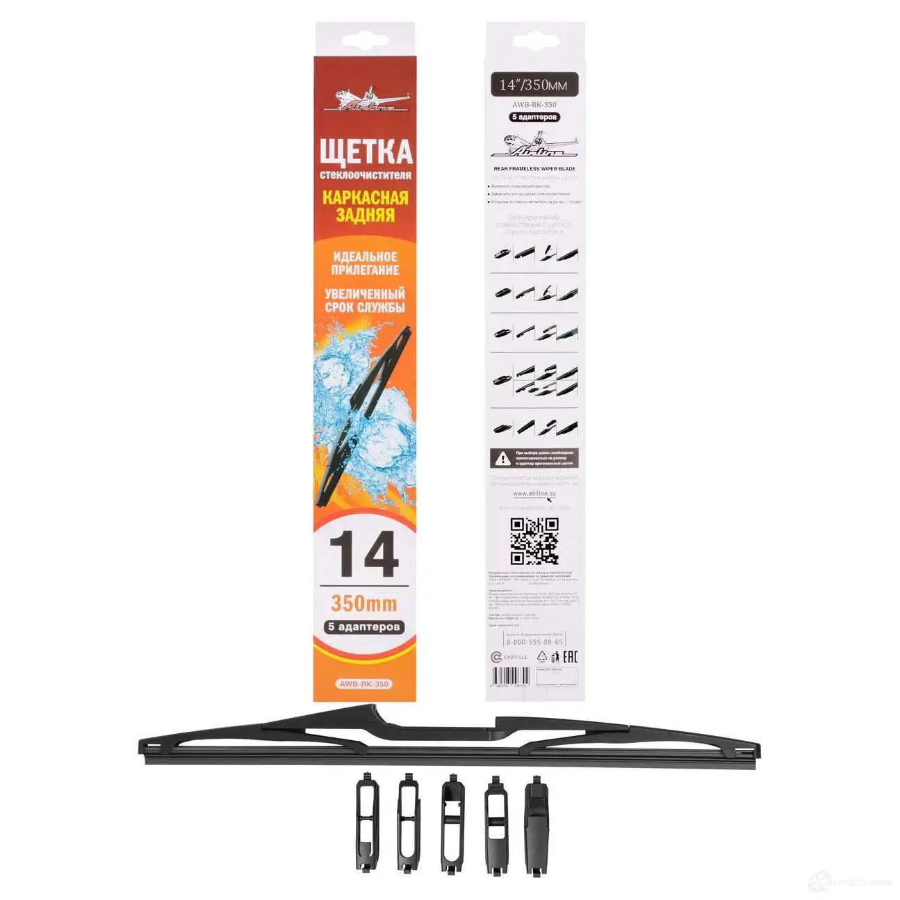 | Доп. наименование Водопад | Щетка стеклоочистителя Airline AWBRK350 350 мм (14") задняя каркасная, 5 адаптеров |