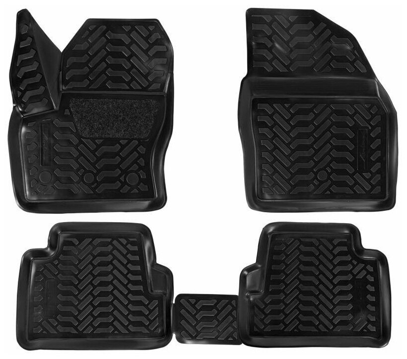 Ковры изготовлены из современного полимера ТЭП, который не теряет эластичность и сохраняет форму при пониженных и повышенных температурах. Ковры идеально повторяют форму пола выбранного автомобиля за счет снятия его индивидуальных размеров 3D сканером. Ковры имеют современный рисунок имитирующий протектор шин. У большинства моделей водительский коврик имеет ворсовый подпятник для предотвращения соскальзывания ноги, а так же оснащены крепежом для крепления их в штатных местах. Ковры преображают вид салона автомобиля и защищают напольный ковролин от истирания, намокания и загрязнений на долгое время. Преимущества ковров: эластичный материал стойкие к повышенным и пониженным температурам (- 40/+ 65 ?С) идеально повторяют форму пола авто(3D сканирование) не имеют неприятного запахавысокие бортикимодный дизайн
