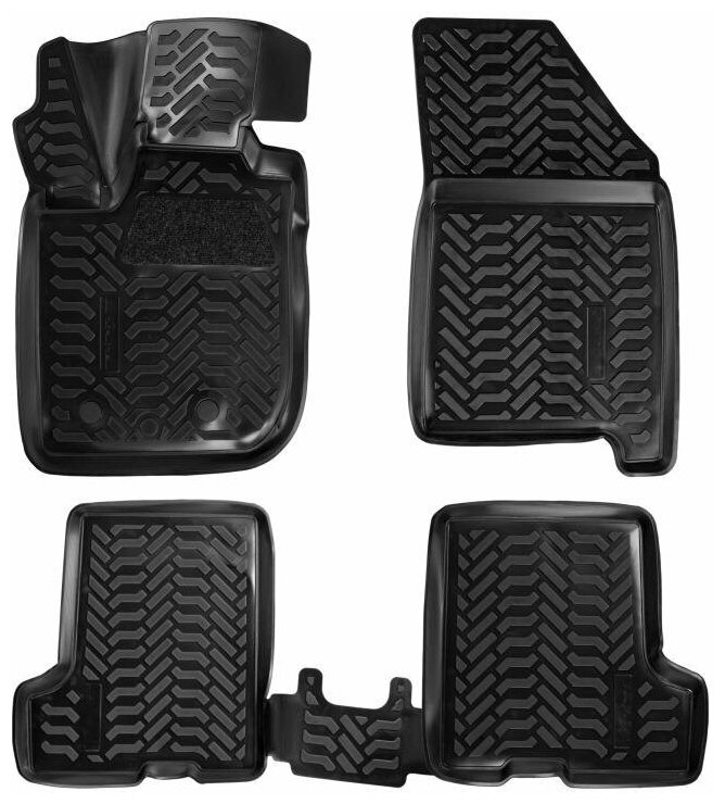Ковры изготовлены из современного полимера ТЭП, который не теряет эластичность и сохраняет форму при пониженных и повышенных температурах. Ковры идеально повторяют форму пола выбранного автомобиля за счет снятия его индивидуальных размеров 3D сканером. Ковры имеют современный рисунок имитирующий протектор шин. У большинства моделей водительский коврик имеет ворсовый подпятник для предотвращения соскальзывания ноги, а так же оснащены крепежом для крепления их в штатных местах. Ковры преображают вид салона автомобиля и защищают напольный ковролин от истирания, намокания и загрязнений на долгое время. Преимущества ковров: эластичный материал стойкие к повышенным и пониженным температурам (- 40/+ 65 ?С) идеально повторяют форму пола авто(3D сканирование) не имеют неприятного запахавысокие бортикимодный дизайн