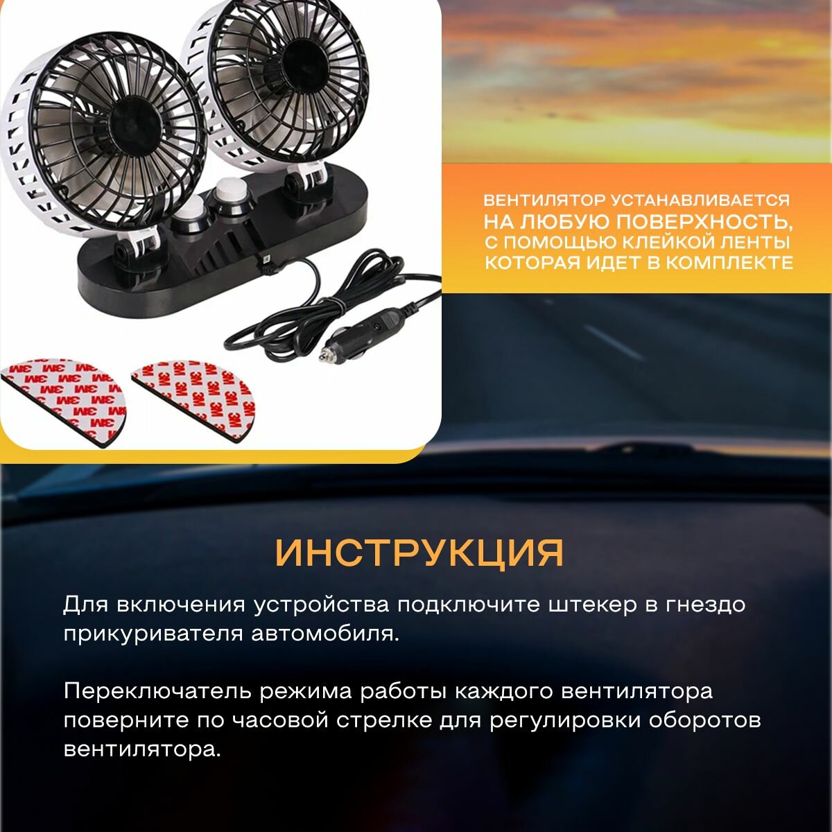 Вентилятор предназначен для обдува воздухом водителя и/или пассажиров в жаркую погоду. Крепится на панель приборов. Имеет выключатель питания с регулировкой для каждого вентилятора и надёжный штекер.
