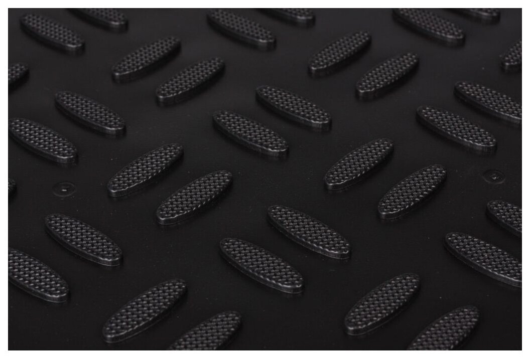 Ковры изготовлены из современного полимера ТЭП, который не теряет эластичность и сохраняет форму при пониженных и повышенных температурах. Ковры идеально повторяют форму пола выбранного автомобиля за счет снятия его индивидуальных размеров 3D сканером. Ковры имеют современный рисунок имитирующий протектор шин. У большинства моделей водительский коврик имеет ворсовый подпятник для предотвращения соскальзывания ноги, а так же оснащены крепежом для крепления их в штатных местах. Ковры преображают вид салона автомобиля и защищают напольный ковролин от истирания, намокания и загрязнений на долгое время. Преимущества ковров: эластичный материал стойкие к повышенным и пониженным температурам (- 40/+ 65 ?С) идеально повторяют форму пола авто(3D сканирование) не имеют неприятного запахавысокие бортикимодный дизайн