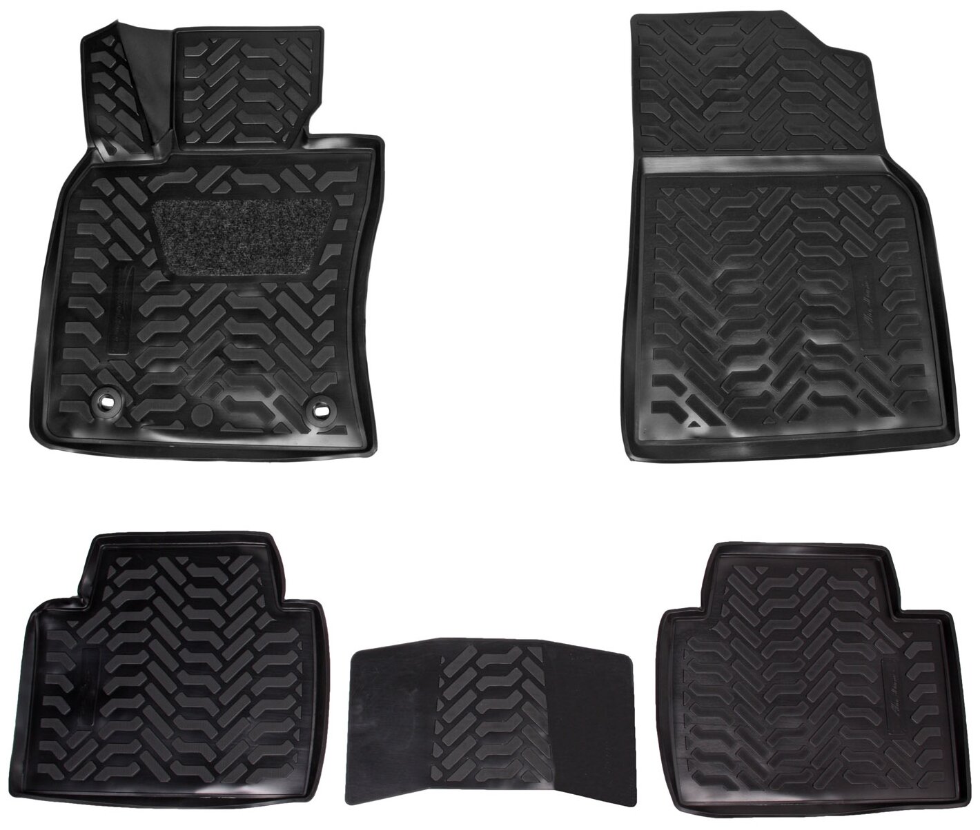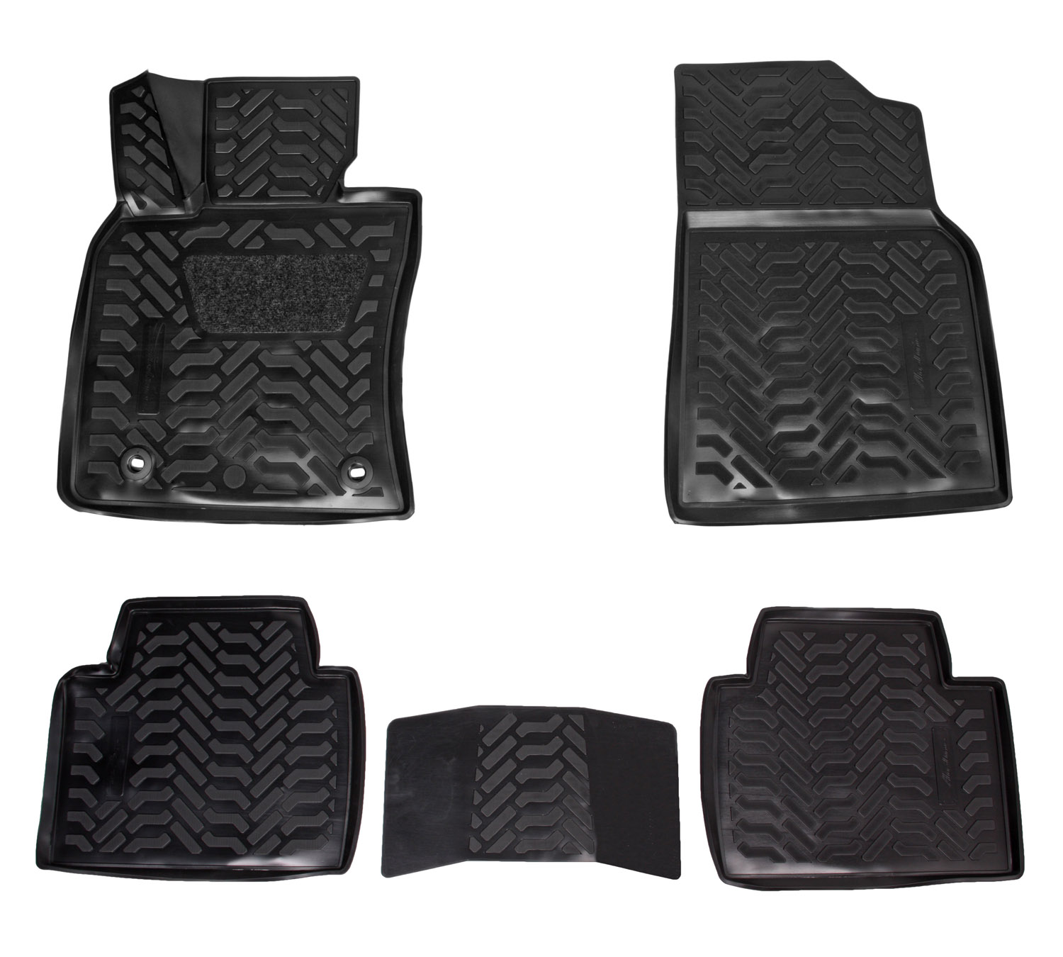 Ковры изготовлены из современного полимера ТЭП, который не теряет эластичность и сохраняет форму при пониженных и повышенных температурах. Ковры идеально повторяют форму пола выбранного автомобиля за счет снятия его индивидуальных размеров 3D сканером. Ковры имеют современный рисунок имитирующий протектор шин. У большинства моделей водительский коврик имеет ворсовый подпятник для предотвращения соскальзывания ноги, а так же оснащены крепежом для крепления их в штатных местах. Ковры преображают вид салона автомобиля и защищают напольный ковролин от истирания, намокания и загрязнений на долгое время. Преимущества ковров: эластичный материал стойкие к повышенным и пониженным температурам (- 40/+ 65 ?С) идеально повторяют форму пола авто(3D сканирование) не имеют неприятного запахавысокие бортикимодный дизайн