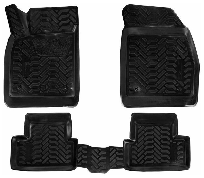 Ковры изготовлены из современного полимера ТЭП, который не теряет эластичность и сохраняет форму при пониженных и повышенных температурах. Ковры идеально повторяют форму пола выбранного автомобиля за счет снятия его индивидуальных размеров 3D сканером. Ковры имеют современный рисунок имитирующий протектор шин. У большинства моделей водительский коврик имеет ворсовый подпятник для предотвращения соскальзывания ноги, а так же оснащены крепежом для крепления их в штатных местах. Ковры преображают вид салона автомобиля и защищают напольный ковролин от истирания, намокания и загрязнений на долгое время. Преимущества ковров: эластичный материал стойкие к повышенным и пониженным температурам (- 40/+ 65 ?С) идеально повторяют форму пола авто(3D сканирование) не имеют неприятного запахавысокие бортикимодный дизайн