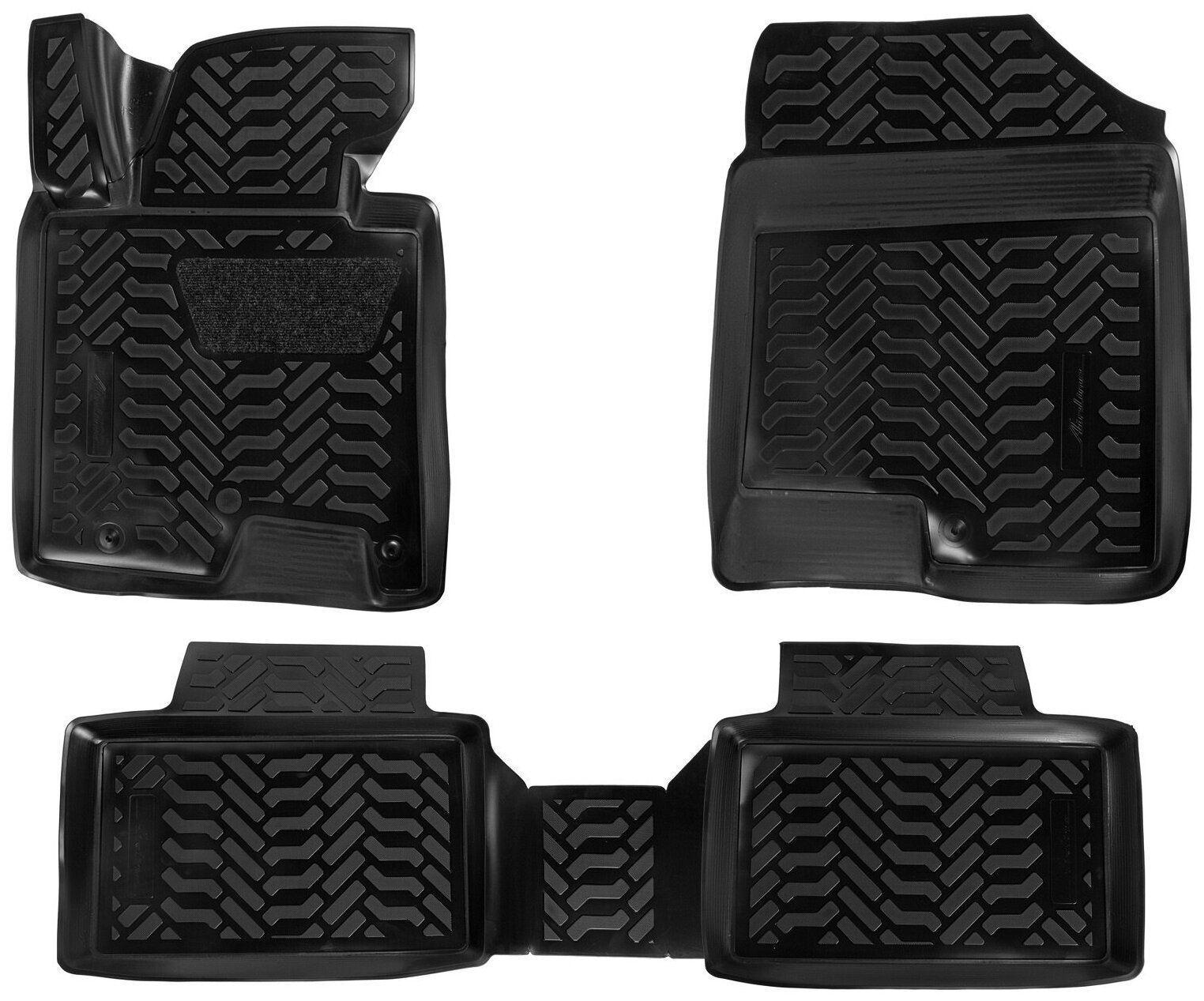 Ковры изготовлены из современного полимера ТЭП, который не теряет эластичность и сохраняет форму при пониженных и повышенных температурах. Ковры идеально повторяют форму пола выбранного автомобиля за счет снятия его индивидуальных размеров 3D сканером. Ковры имеют современный рисунок имитирующий протектор шин. У большинства моделей водительский коврик имеет ворсовый подпятник для предотвращения соскальзывания ноги, а так же оснащены крепежом для крепления их в штатных местах. Ковры преображают вид салона автомобиля и защищают напольный ковролин от истирания, намокания и загрязнений на долгое время. Преимущества ковров: эластичный материал стойкие к повышенным и пониженным температурам (- 40/+ 65 ?С) идеально повторяют форму пола авто(3D сканирование) не имеют неприятного запахавысокие бортикимодный дизайн