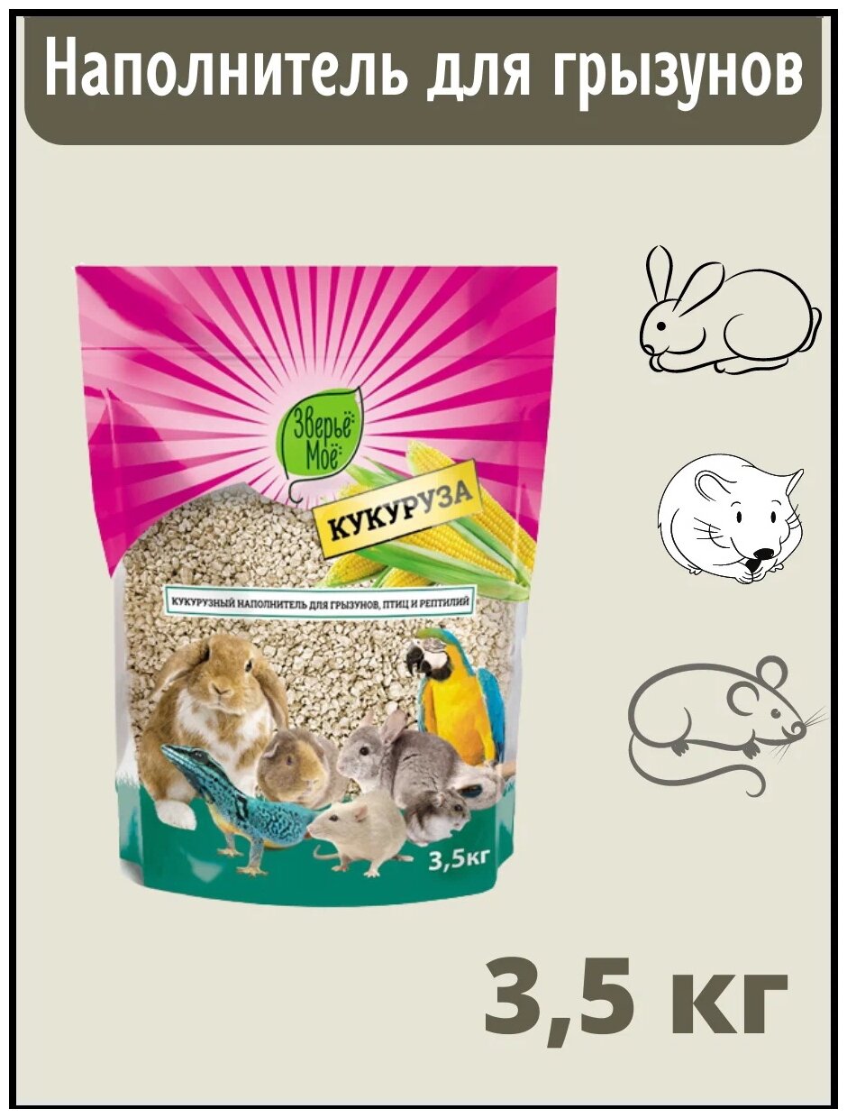 Кукурузный наполнитель для грызунов, птиц и рептилий Зверье мое абсолютно безопасный и натуральный продукт для Вашего питомца. Изготовлен из сердцевины кукурузного початка по специальной технологии, которая обеспечивает оптимальную структуру наполнителя и позволяет ему максимально эффективно работать: впитывать влагу и запахи. Наполнитель не прилипает к лапкам, не пылит и является гипоаллергенным.