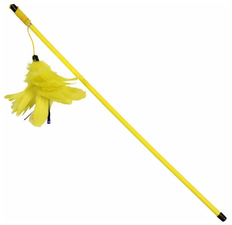 Удочка-дразнилка с цветными перьями. На жёлтом пластиковом стержне закреплена наживка из жёлтых перьев. Дразнилка станет любимой игрушкой для кошек и котят. Играя с этой забавной дразнилкой, маленькие котята развиваются физически, а взрослые кошки и коты поддерживают свой мышечный тонус.Длина удочки: 48 см.
