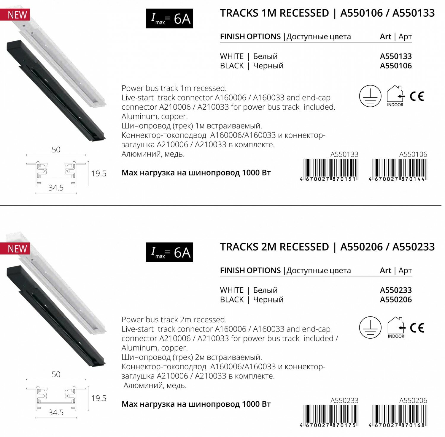 Шинопровод встраиваемый Arte Lamp TRACK ACCESSORIES 100 см черный