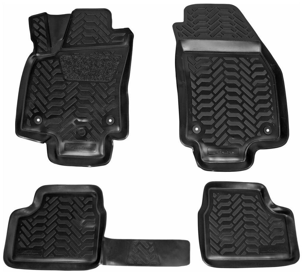 Ковры изготовлены из современного полимера ТЭП, который не теряет эластичность и сохраняет форму при пониженных и повышенных температурах. Ковры идеально повторяют форму пола выбранного автомобиля за счет снятия его индивидуальных размеров 3D сканером. Ковры имеют современный рисунок имитирующий протектор шин. У большинства моделей водительский коврик имеет ворсовый подпятник для предотвращения соскальзывания ноги, а так же оснащены крепежом для крепления их в штатных местах. Ковры преображают вид салона автомобиля и защищают напольный ковролин от истирания, намокания и загрязнений на долгое время. Преимущества ковров: эластичный материал стойкие к повышенным и пониженным температурам (- 40/+ 65 ?С) идеально повторяют форму пола авто(3D сканирование) не имеют неприятного запахавысокие бортикимодный дизайн