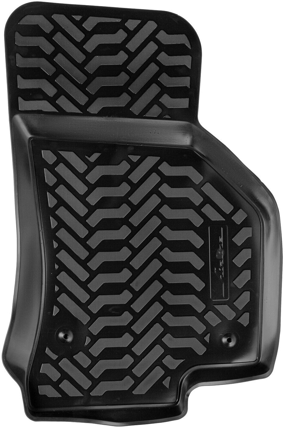 Ковры изготовлены из современного полимера ТЭП, который не теряет эластичность и сохраняет форму при пониженных и повышенных температурах. Ковры идеально повторяют форму пола выбранного автомобиля за счет снятия его индивидуальных размеров 3D сканером. Ковры имеют современный рисунок имитирующий протектор шин. У большинства моделей водительский коврик имеет ворсовый подпятник для предотвращения соскальзывания ноги, а так же оснащены крепежом для крепления их в штатных местах. Ковры преображают вид салона автомобиля и защищают напольный ковролин от истирания, намокания и загрязнений на долгое время. Преимущества ковров: эластичный материал стойкие к повышенным и пониженным температурам (- 40/+ 65 ?С) идеально повторяют форму пола авто(3D сканирование) не имеют неприятного запахавысокие бортикимодный дизайн