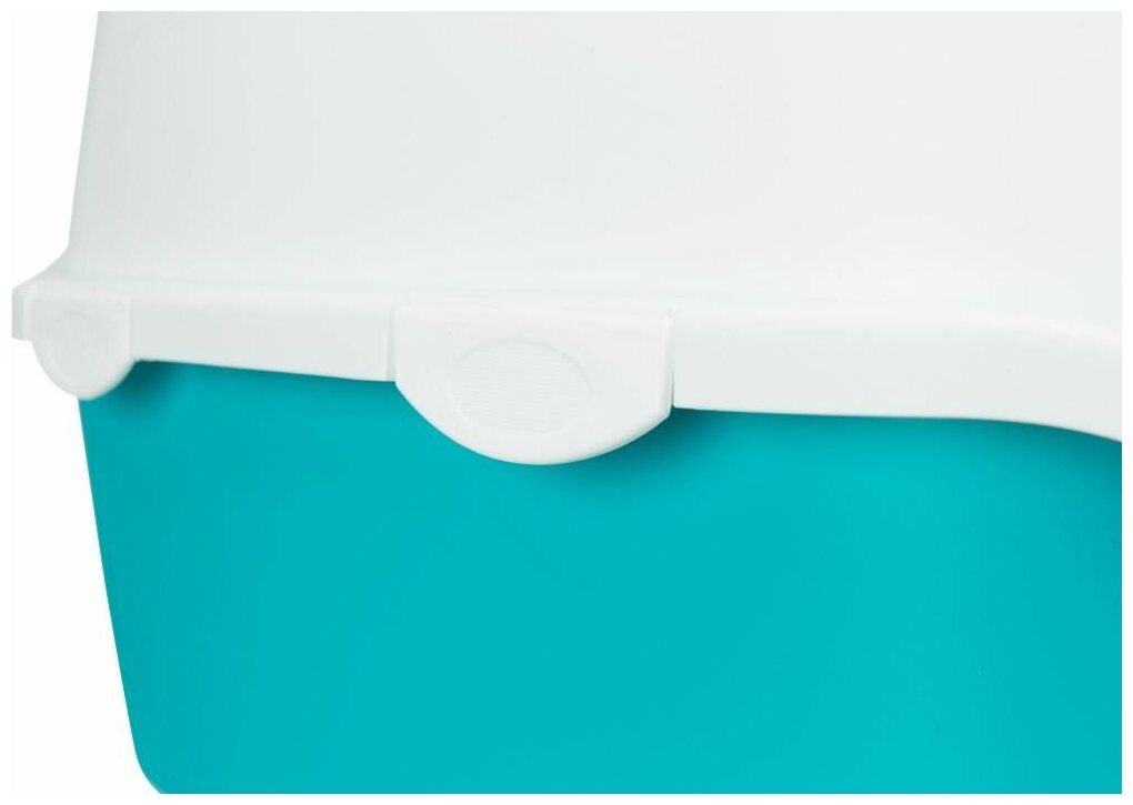 Кошачий туалет закрытого типа. Конструкция из объемной крышки с дверкой и глубокого лотка с двойным бортиком, который препятствует высыпанию наполнителя наружу. Входная дверка для кошки открывается бесшумно в обе стороны. Сверху крышки есть маленькая и удобная ручка. Материал - гладкий ударопрочный пластик. Подходит для использования с любым наполнителем и легко моется в теплой проточной воде