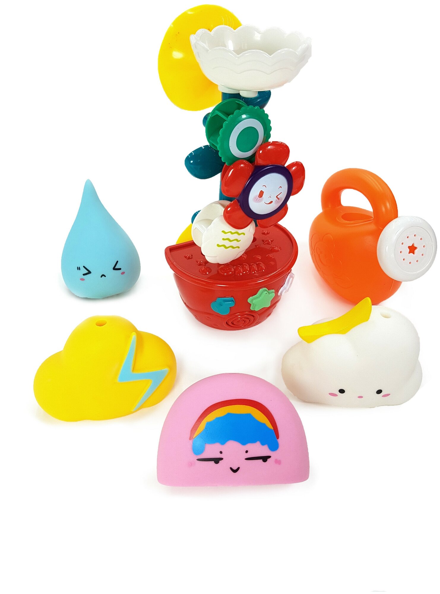 В комплекте: Цветок-мельница, лейка, 4 игрушки для воды.