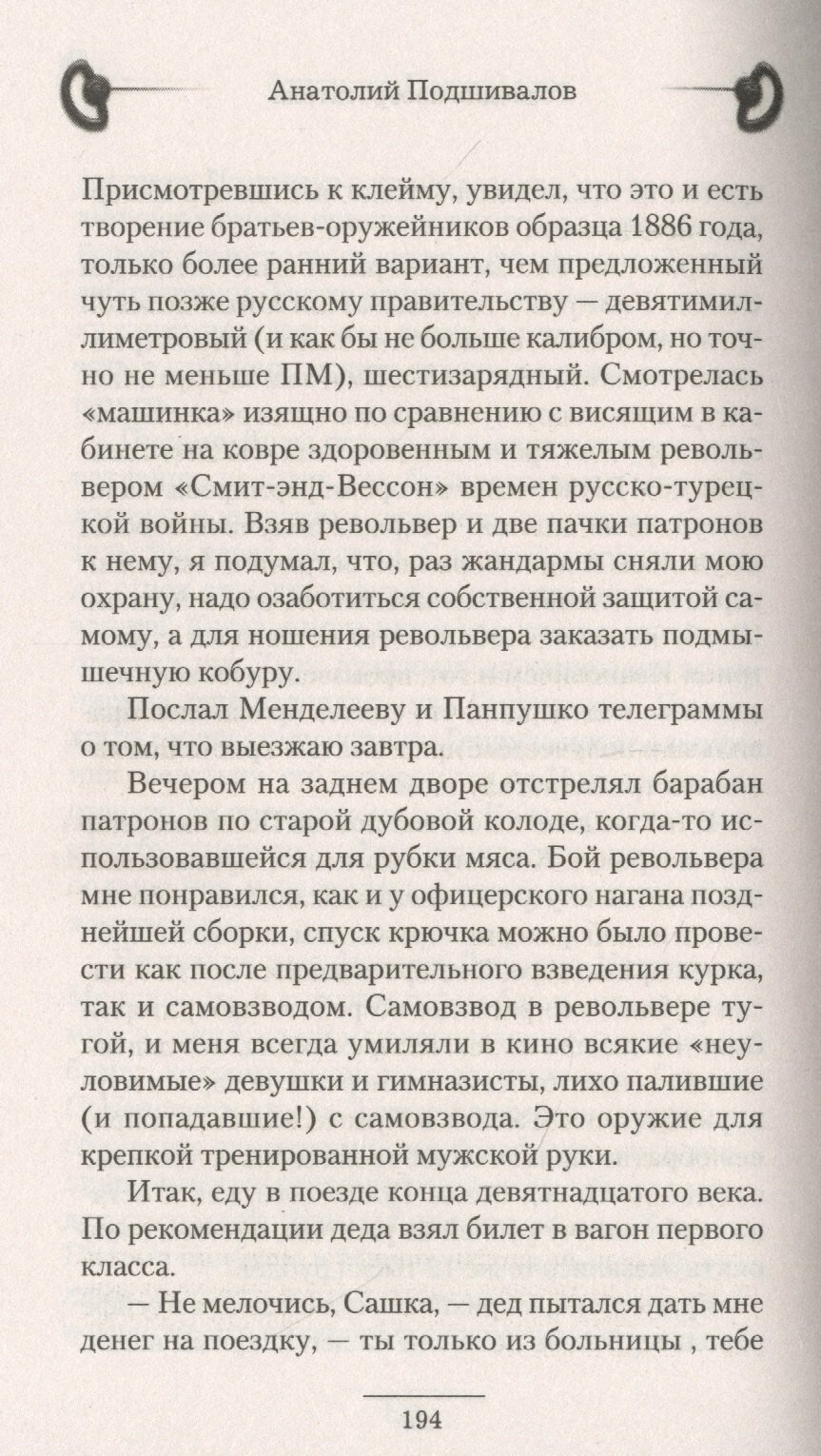 «Вселенец» не спецназовец, не снайпер, не владеет единоборствами, песен про поручиков и кавалергардов «сочинять» не хочет. Дед его — купец первой гильдии, но отказал всем от дома, и к нему еще предстоит найти подход. По специальности Андрей — математик-программист, кроме того, работая в фармацевтической компании, он нахватался по верхам кое-каких знаний в химии. Историю знает крайне отрывочно, точных дат не помнит, только ведущие события и общий ход истории. И что делать с такими навыками в конце XIX века?.. А за себя и державу — обидно.
