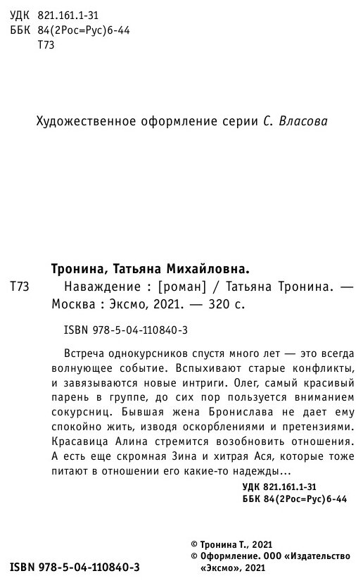 Книга: Наваждение (Татьяна Михайловна Тронина); Эксмо, 2021
